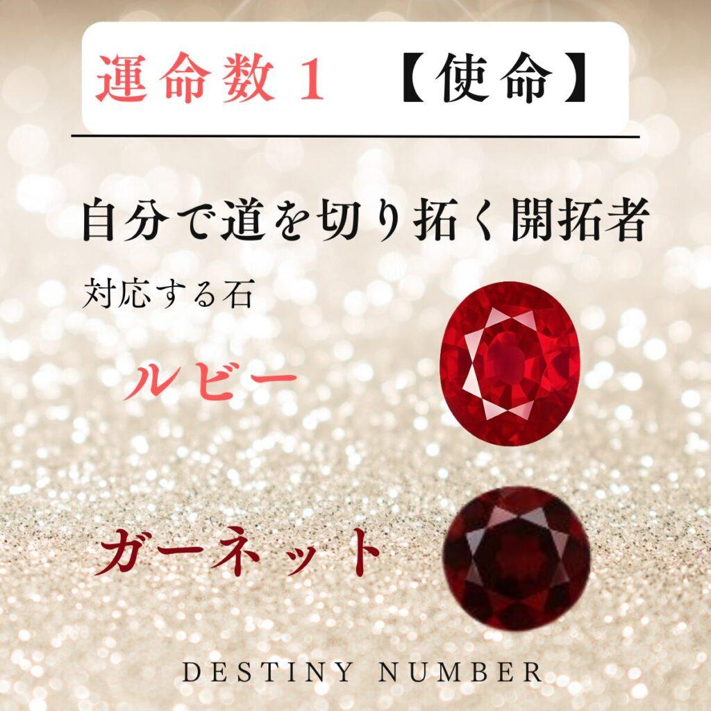 運命数1の使命と対応石が描かれたカード  ルビー・ガーネット