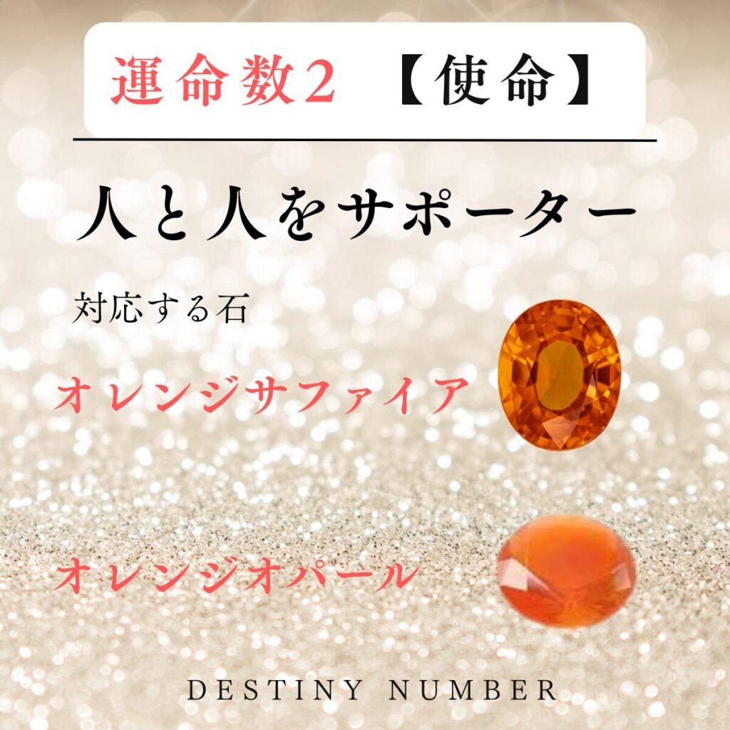 運命数2の使命と対応石が描かれたカード  オレンジサファイア