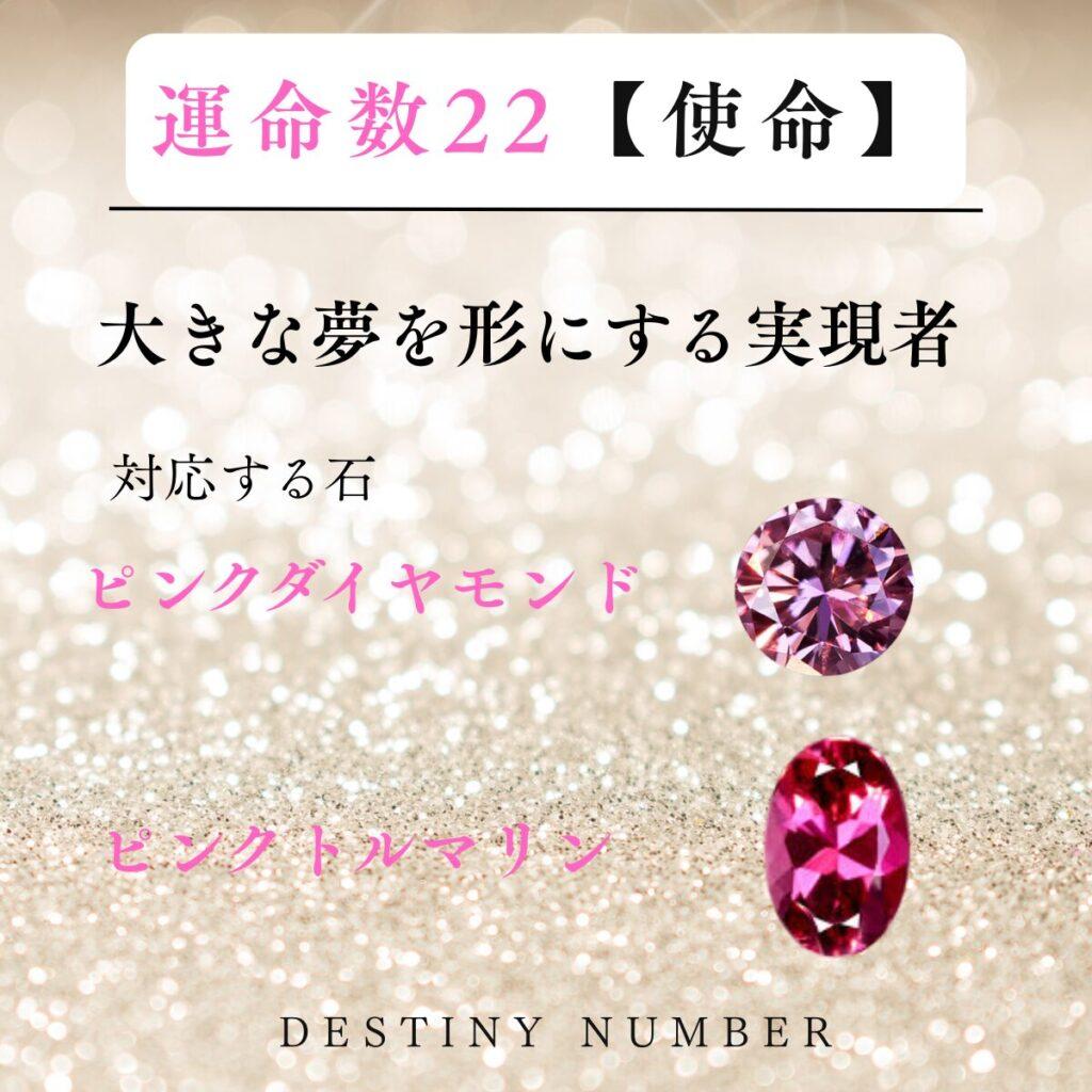 運命数22の使命と対応石が描かれたカ-ド ピンクダイヤ ピンクトルマリン
