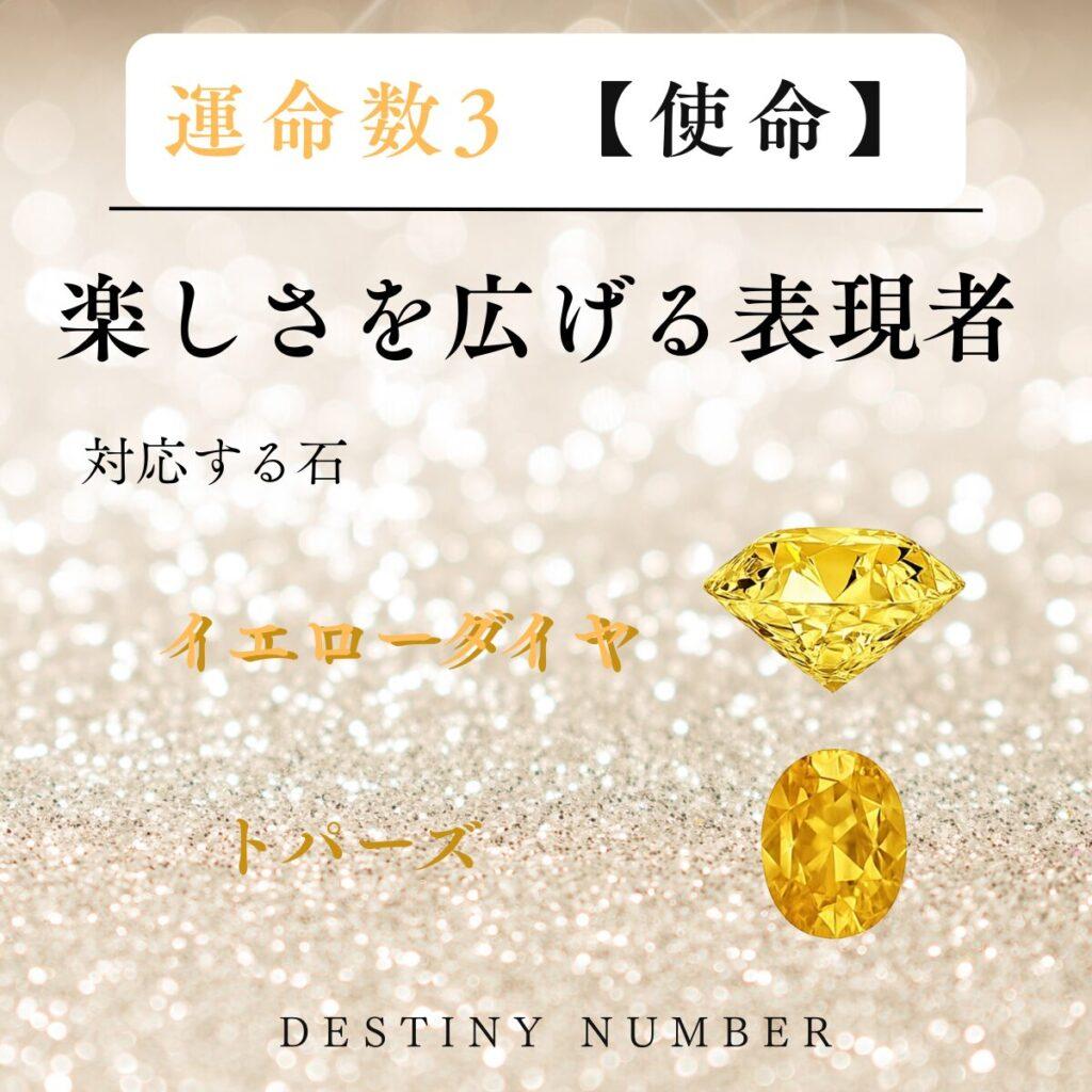 運命数3の使命と対応石が描かれたカード イエローダイヤ イエロートパーズ