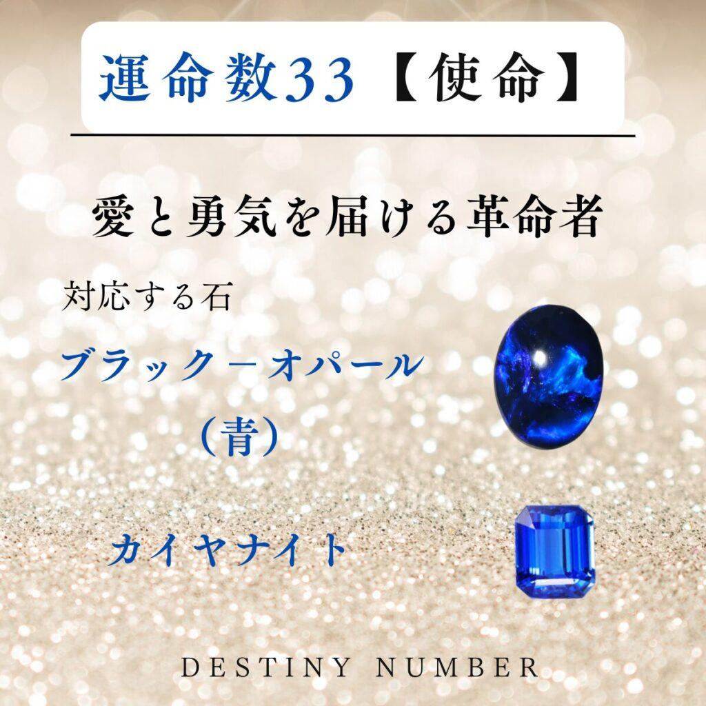運命数33の使命と対応石が描かれたカード ブラックオパール・カイヤナイト