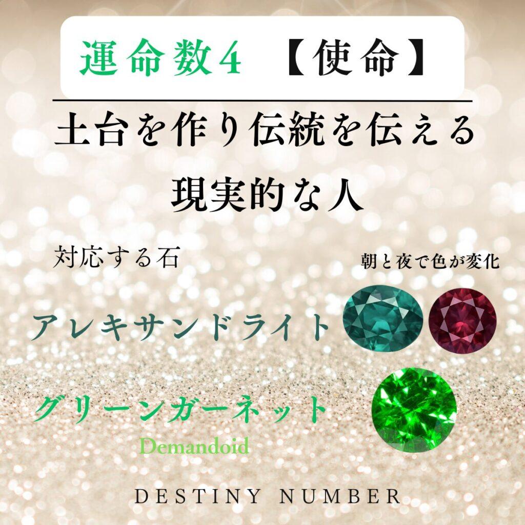 運命数4の使命と対応石が描かれたカード アレキサンドライト