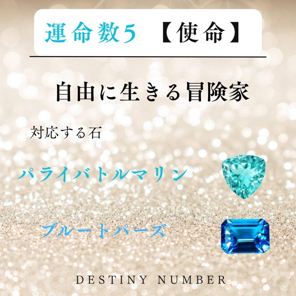 運命数5の使命と対応石が描かれたカード ブルートパーズ・パライアバトルマリン