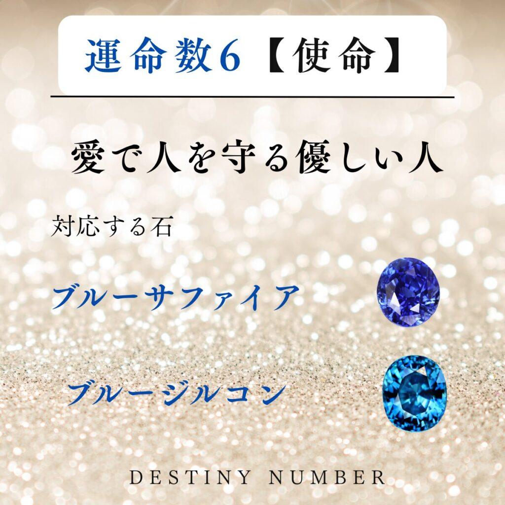 運命数6の使命と対応石が描かれたカード ブルーサファイア