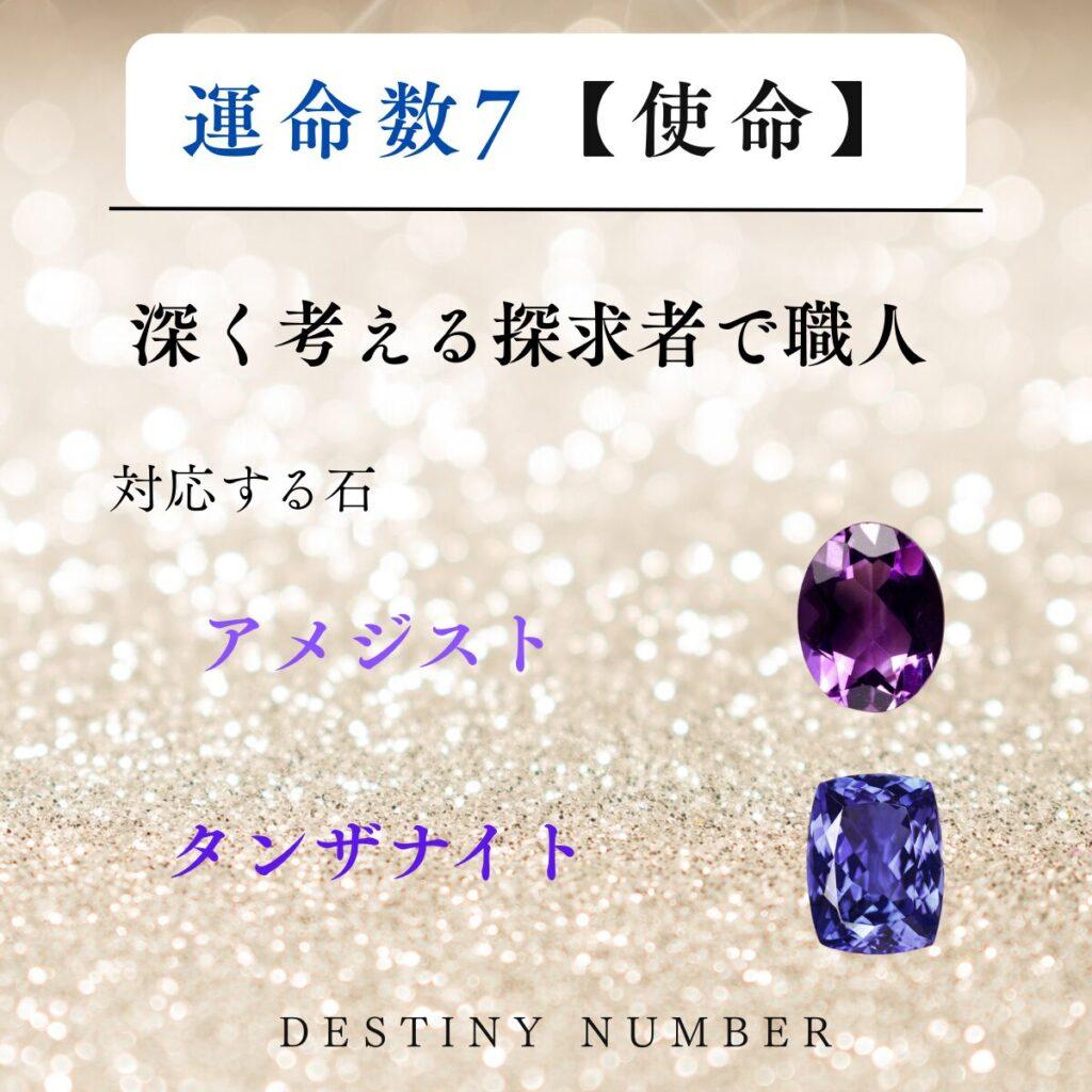 運命数7の使命と対応石が描かれたカード アメジスト・タンザナイト