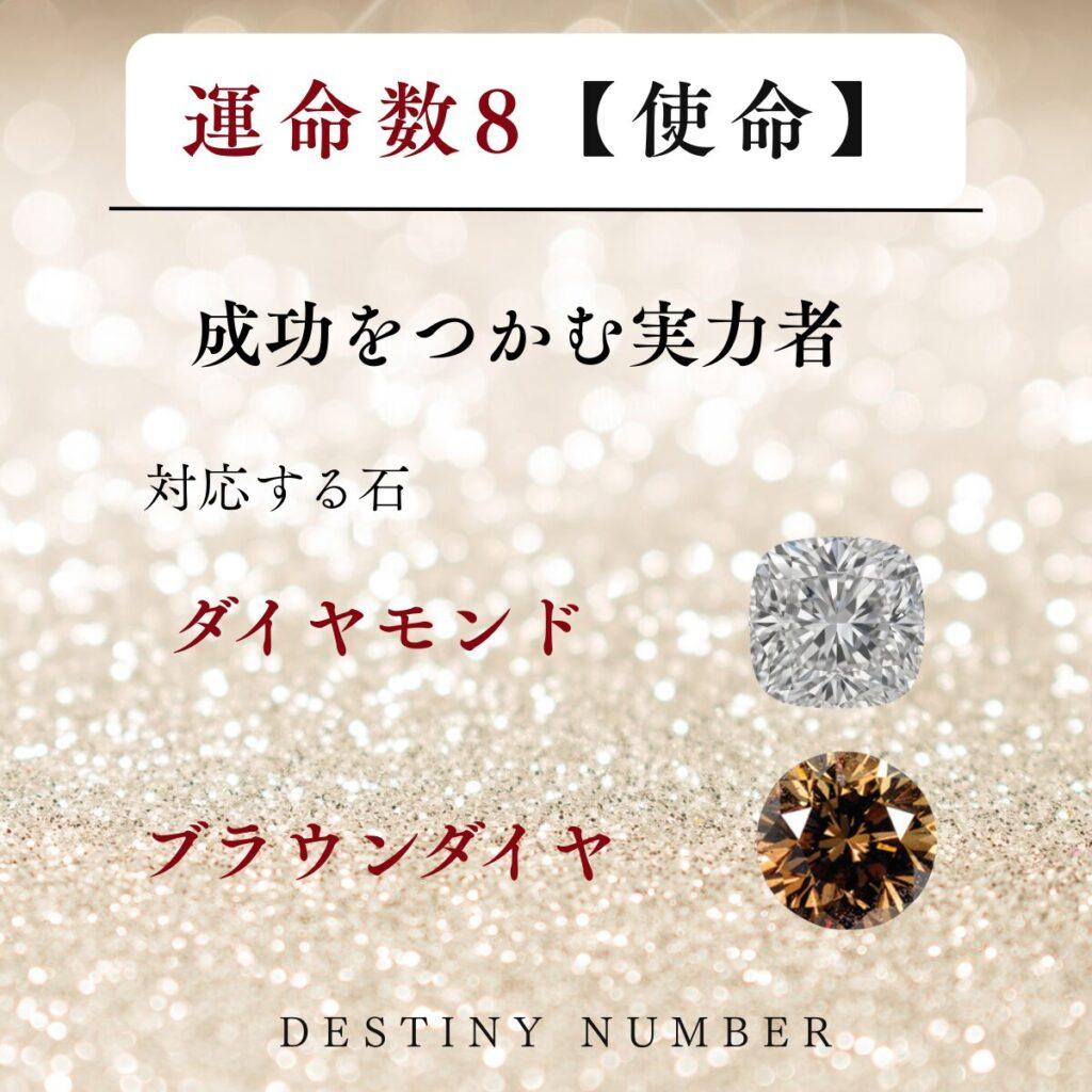 運命数8の使命と対応石が描かれたカード ダイヤモンド