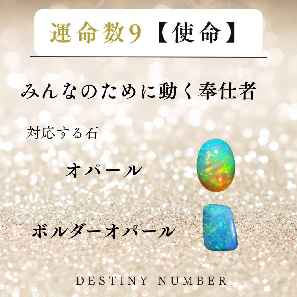 運命数9の使命と対応石が描かれたカード オパール