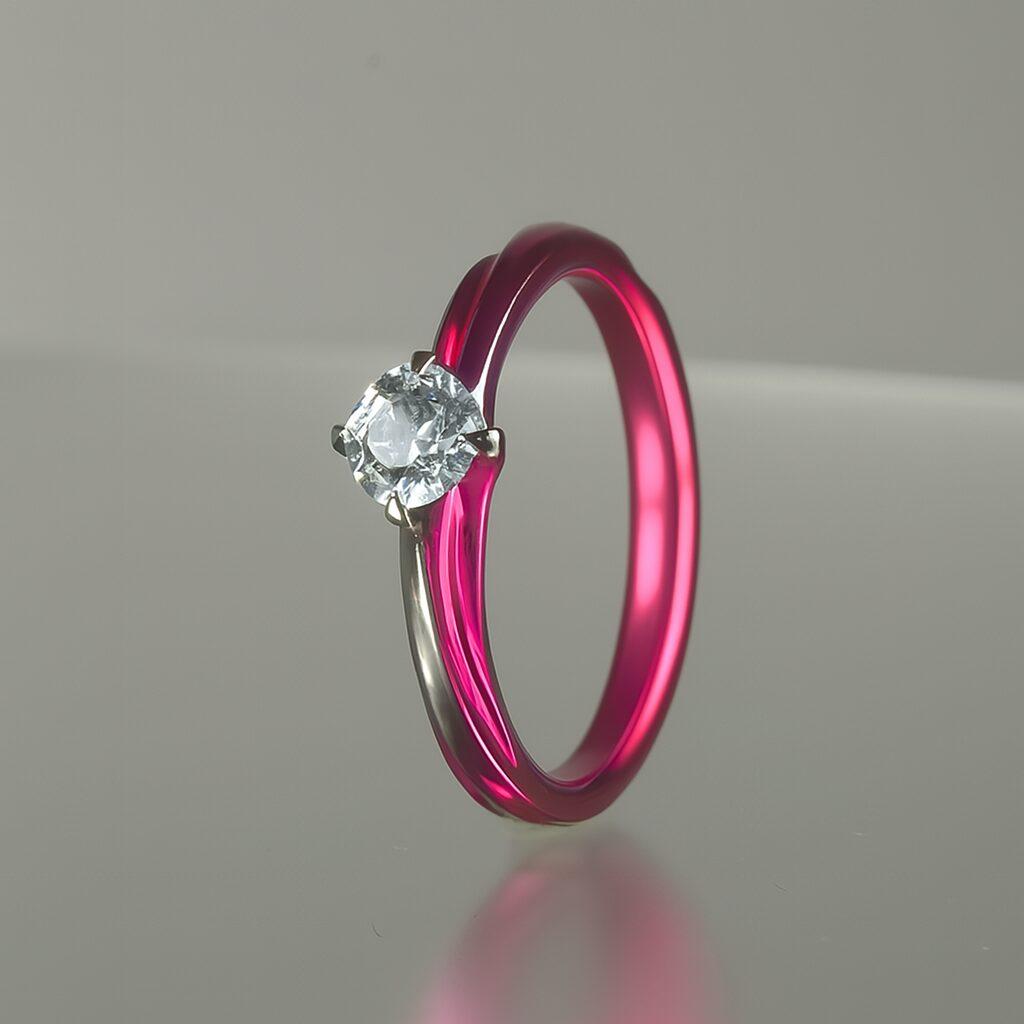 セブンドリームスでは、チタン・ジルコニウム・タンタルといったレアメタルを独自の発色技術でピンクに彩った婚約指輪も製作可能です。