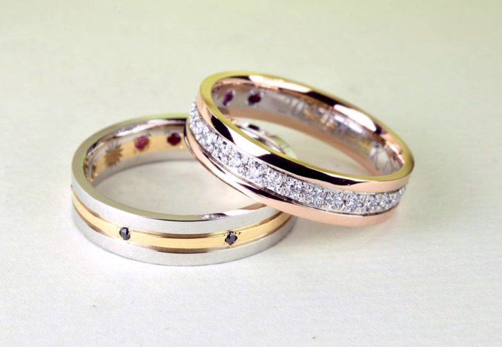 シャンパンゴールドのメンズ&エタニティーの結婚指輪セット...