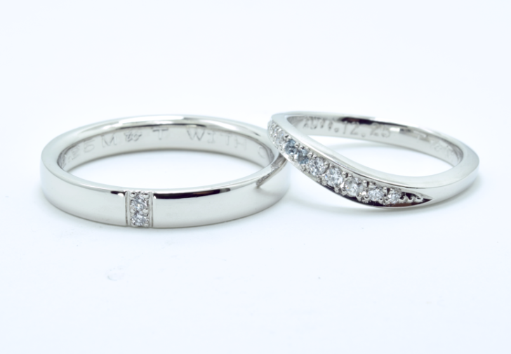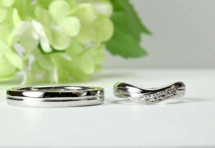 金属アレルギー対応の純チタン&プラチナの結婚指輪 違うデ...
