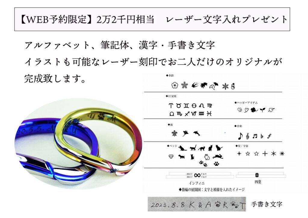 婚約指輪・結婚指輪を作る人の99%が指輪の内側に記念日やイニシャルをいれます。