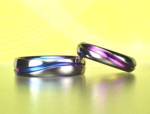 ディープブルーのグラデーション&ピンク~イエローのグラデーションの結婚指輪が完成!喜びの声が届きました。