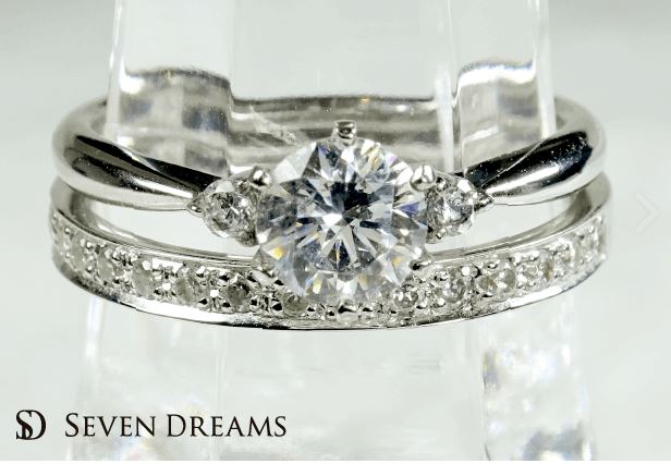 最近では、婚約指輪と重ねて結婚指輪を着けたいと望む女性が増えています。