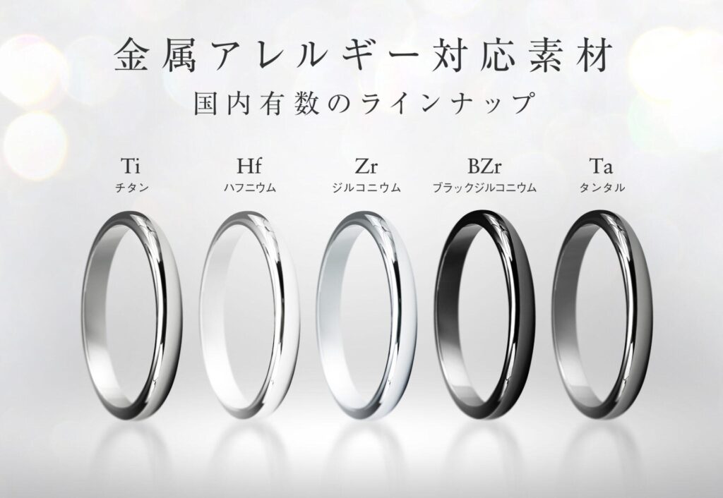 当店では、金属アレルギーに配慮した指輪製作において、以下の特殊金属を使用しています