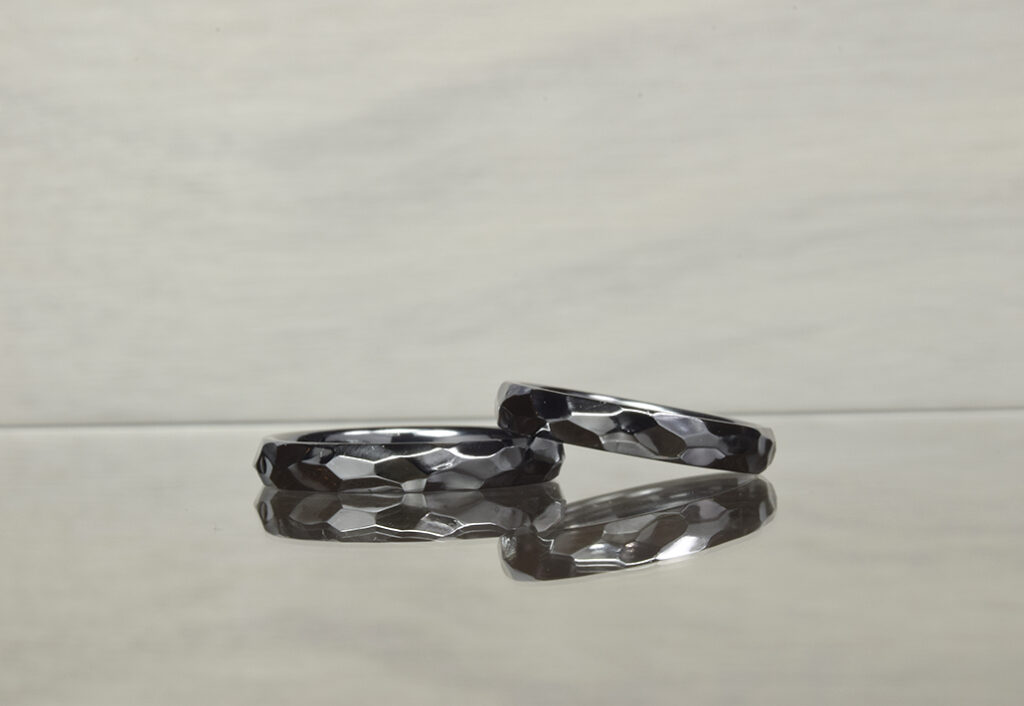 - 鍛造技法:金属を熱し、圧力を加えて成形する伝統的な技法。金属の密度を高め、より耐久性の高い指輪を実現します。