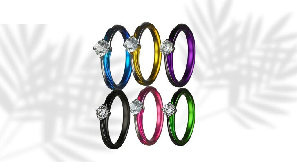 しかし近年では、カラーダイヤモンドやカラー加工されたリング本体など、色で個性や想いを表現する婚約指輪が注目を集めています。