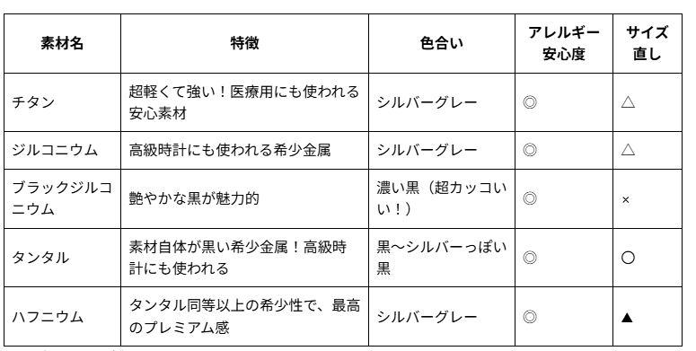 特に金属アレルギーがある方は、素材選びが大事なポイントになります。