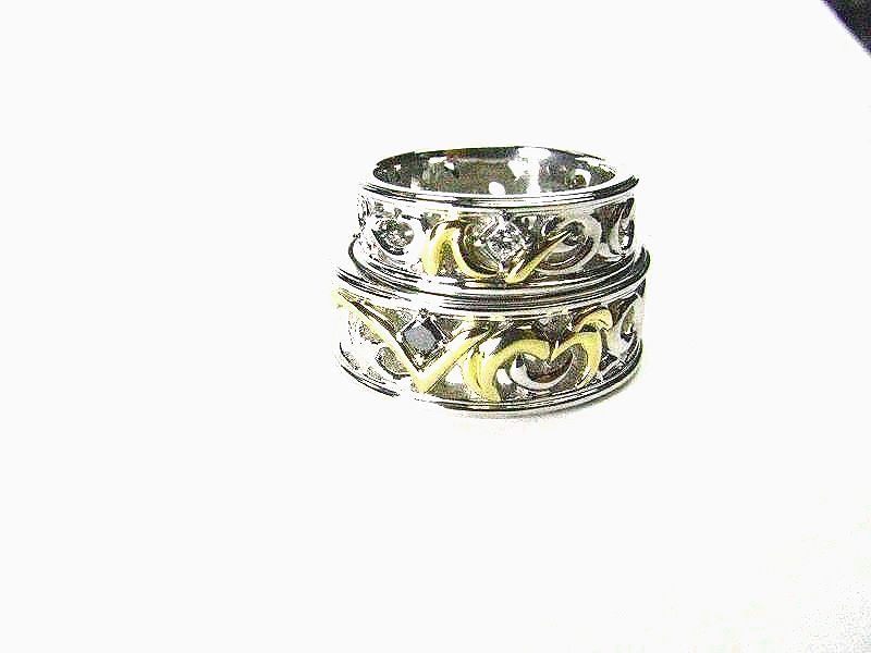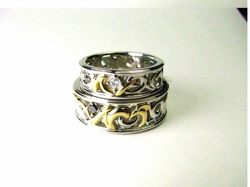 幅は太くてそして結婚指輪を重ねたら1つの文字が浮かび上がるように