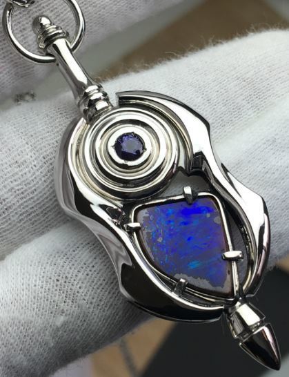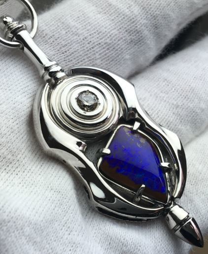 ダガーは諸刃の剣、それは鋭利さと完全なバランスの象徴です。リバーシブルのきわめて珍しいオーストラリア産のボルダーオパールを活かすため両面使いのデザインをご提案いたしました。