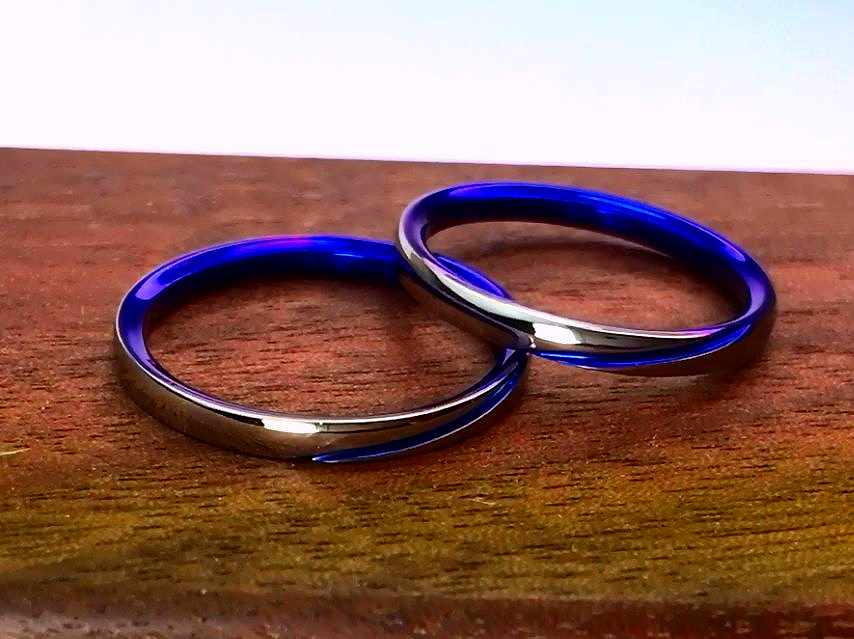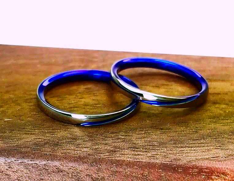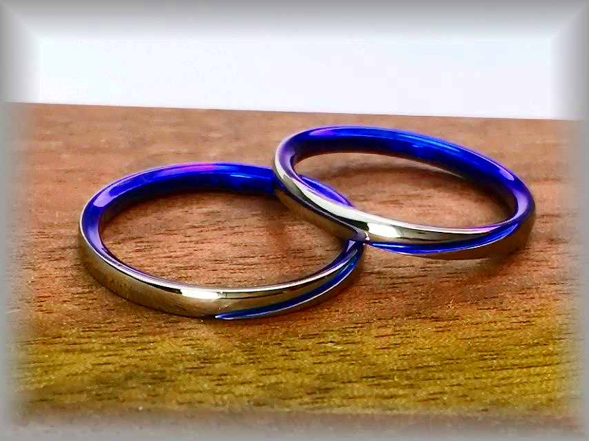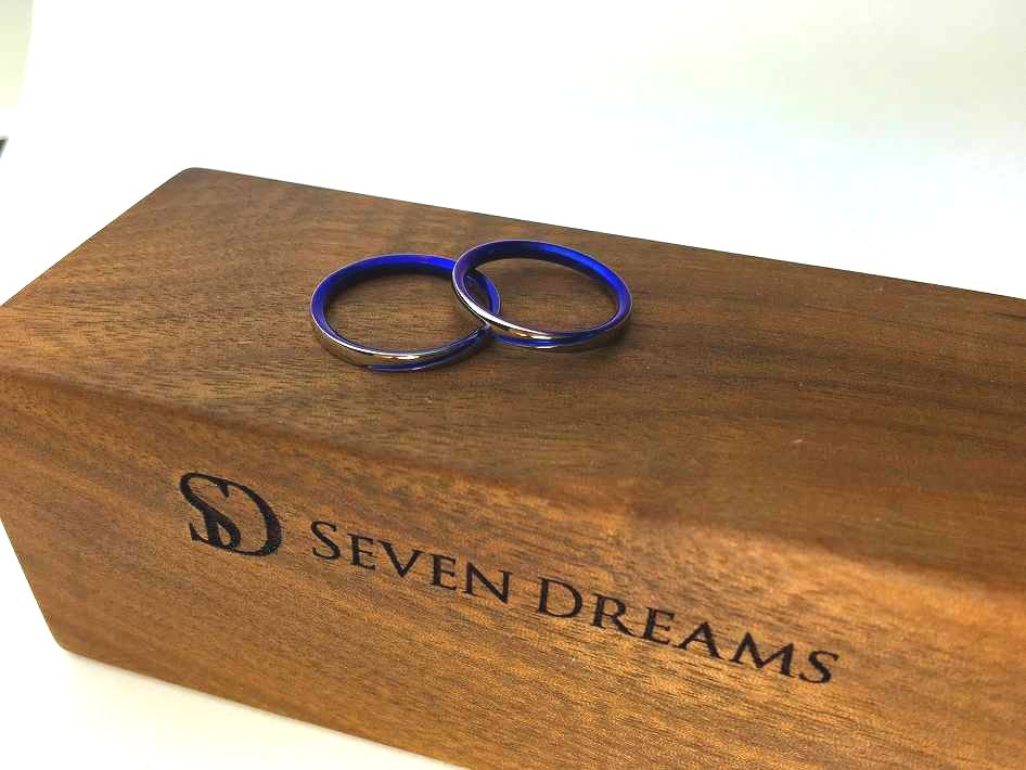 青が好きなのでそれを結婚指輪に表現できるかとの問合せから生まれたリングです。青もディープブルーを選ばれました。