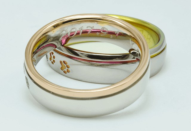 オーダーメイドで愛犬の肉球入りの結婚指輪|マリッジリングづくり