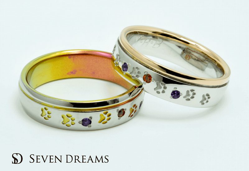 オーダーメイドで愛犬の肉球入りの結婚指輪 【O-MA-086】