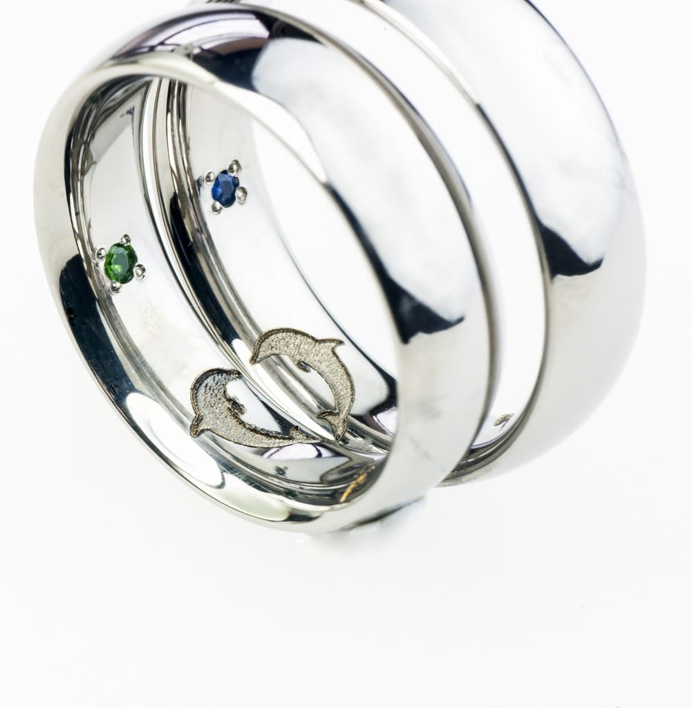 結婚指輪はイルカが描くハートが優しさを伝えるチタンリング