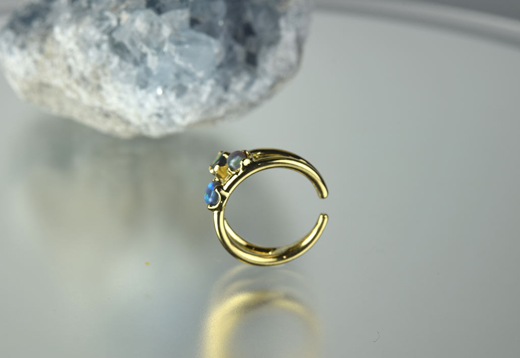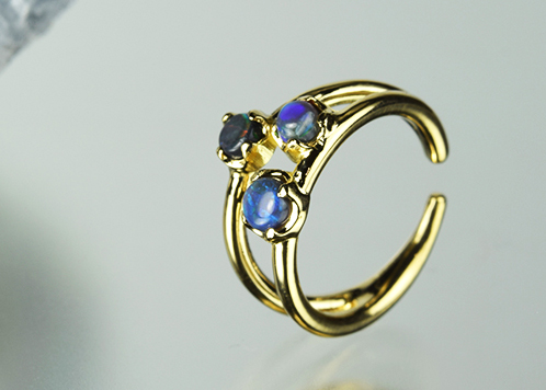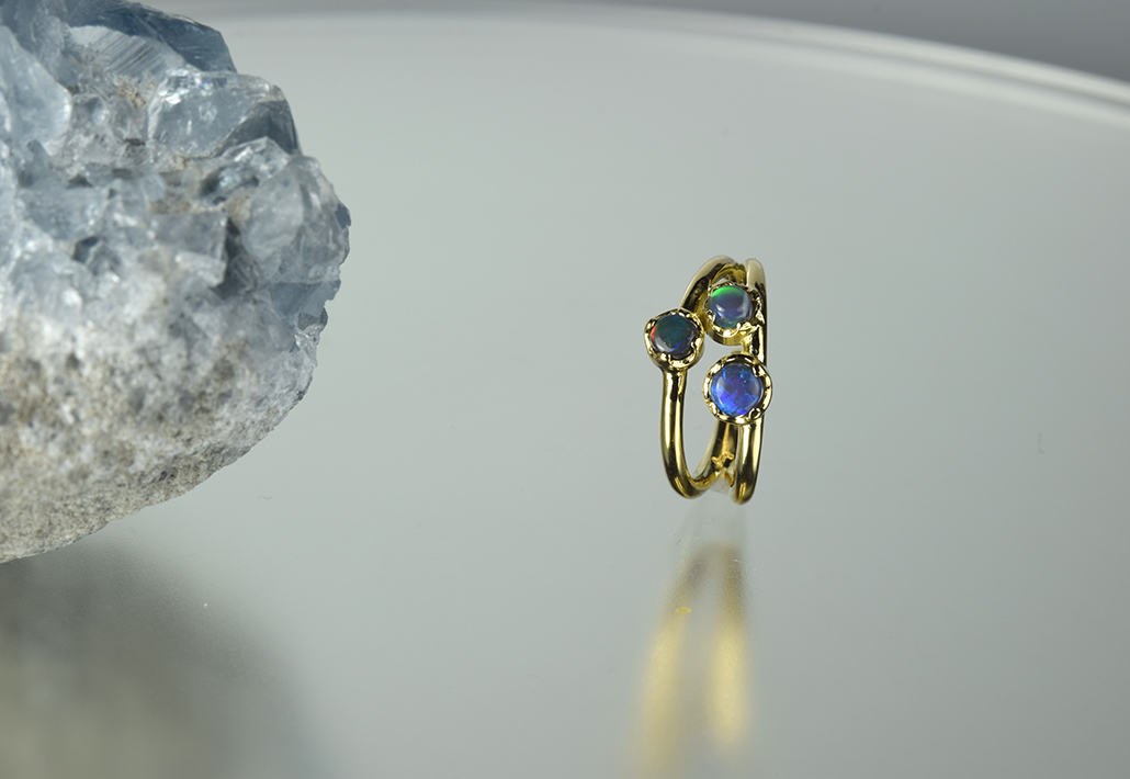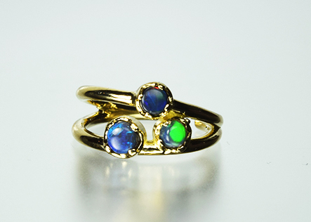 3つのブラックオパールが個性的にキラキラと輝いて気持ちをアップしてくれます。 何個か欲しくなるアイテムです。