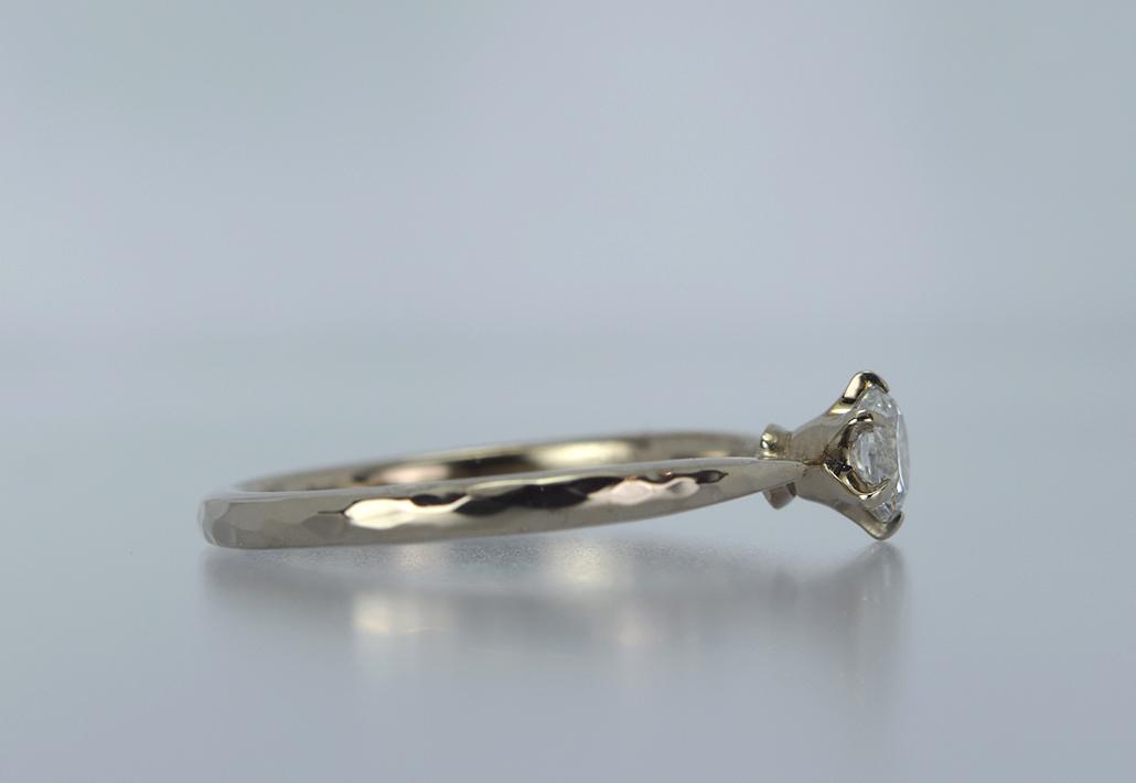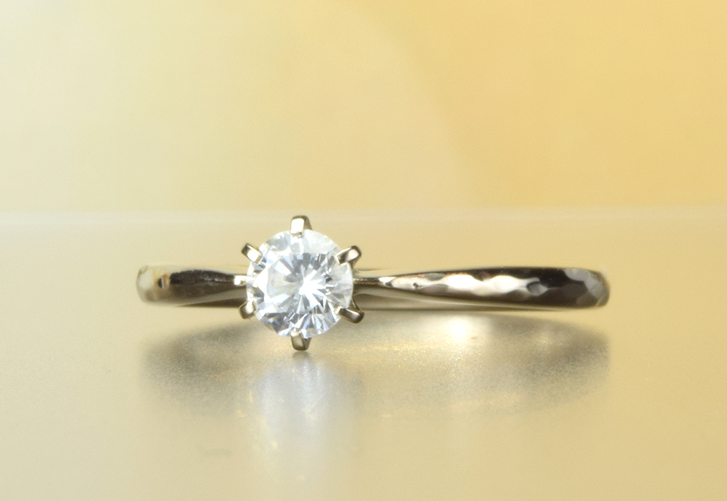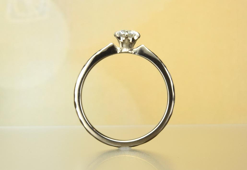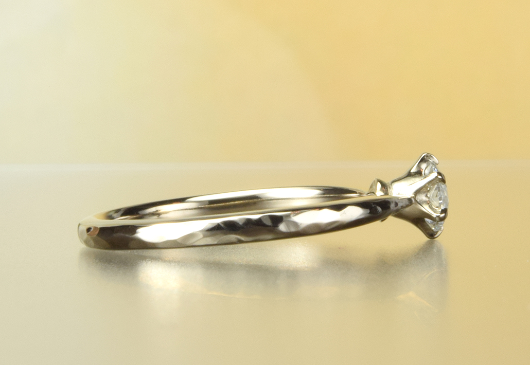 K18シャンパンゴールド婚約指輪|シックな色合いが槌目アームにフィットしていて魅力的です。 EG-001-6P-004