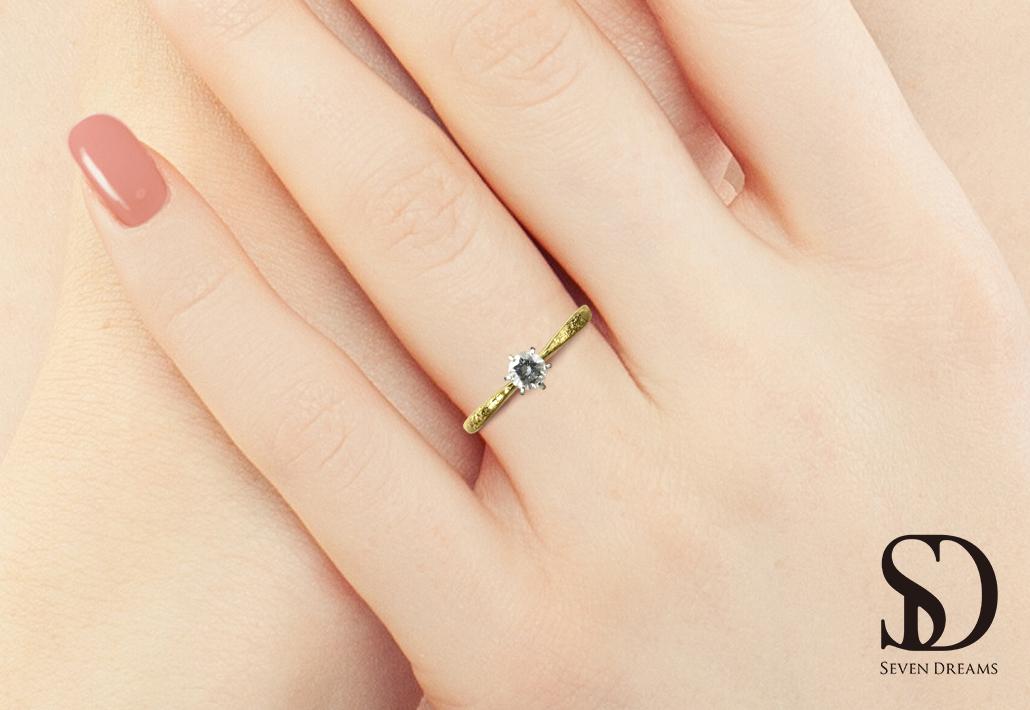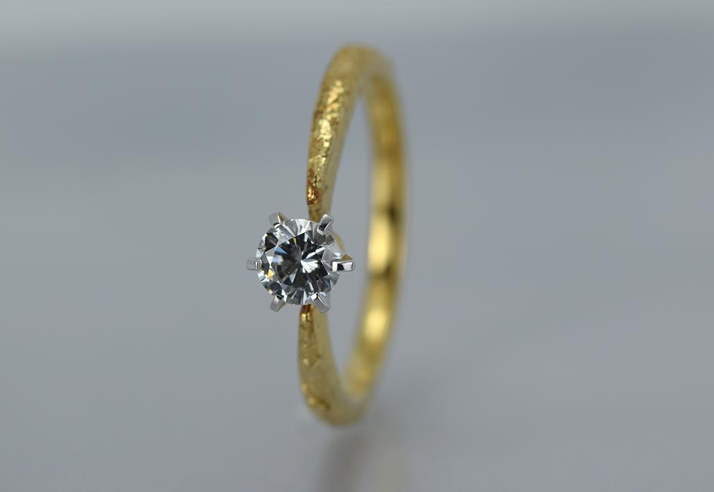 「婚約指輪はゴールドで華やかに!でも、無色のダイヤにゴールドの色が映り込んでしまわないか心配・・・」