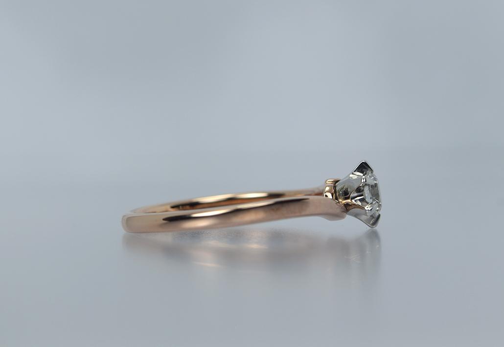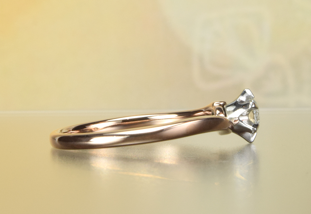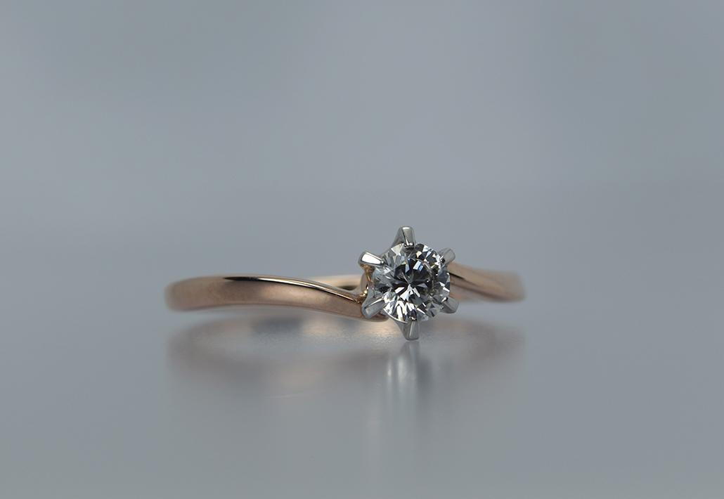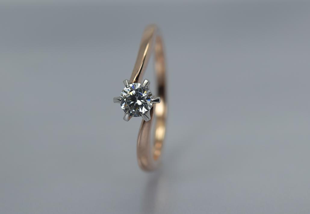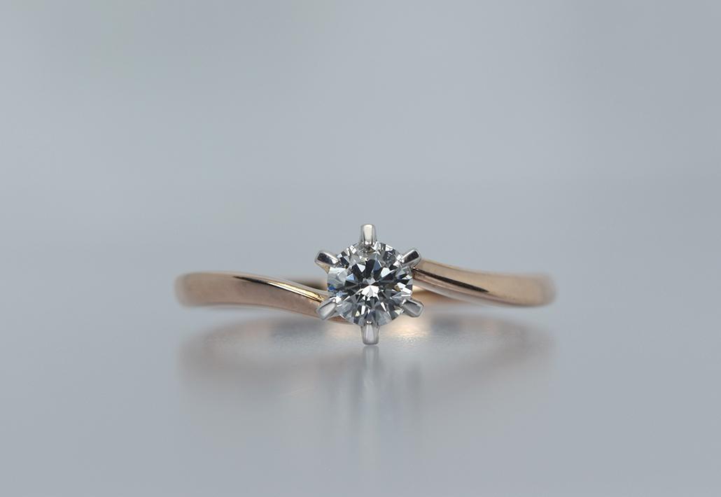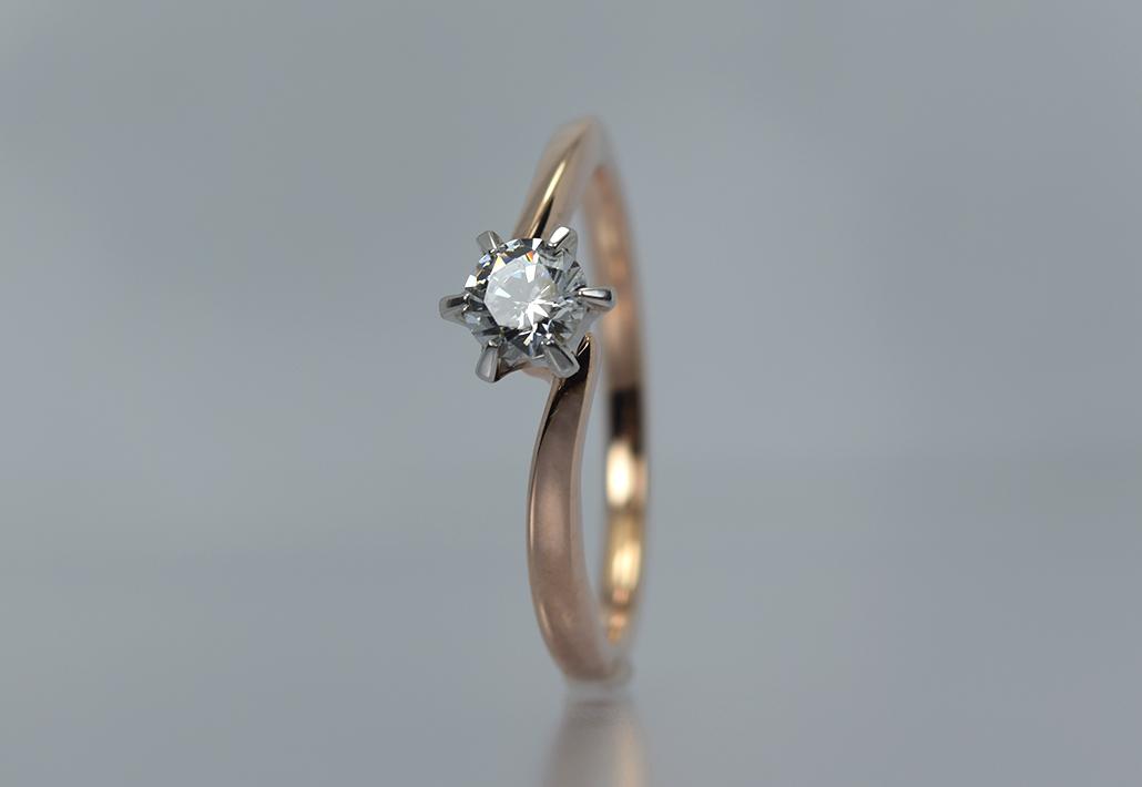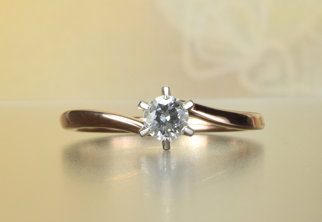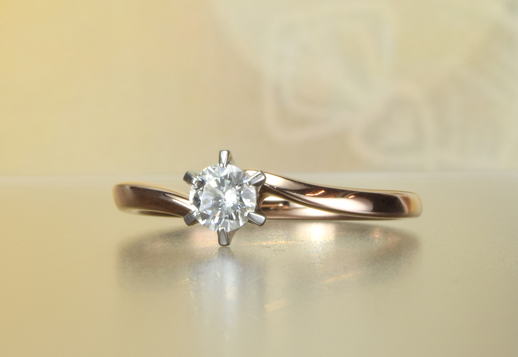 プラチナ&K18ピンクゴールド婚約指輪が人気|ツイストアームはピンクゴールドで華やいで、石座はプラチナで凛としたリング。 EG-010-6P-001