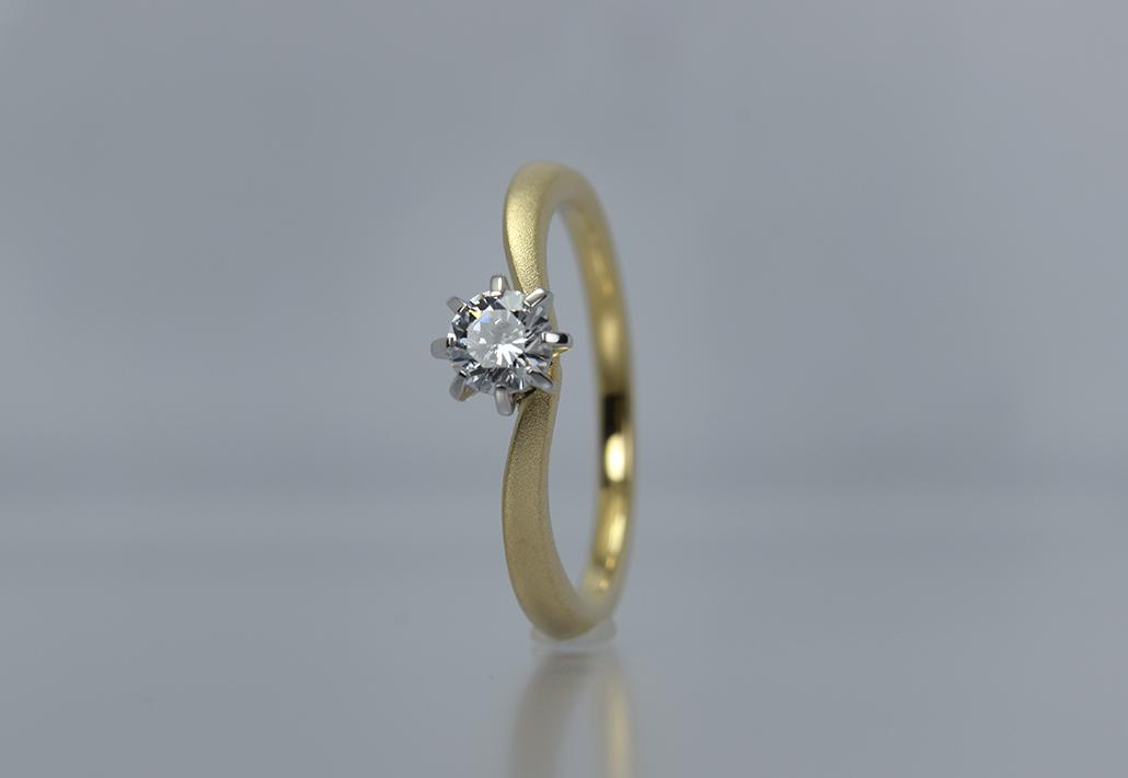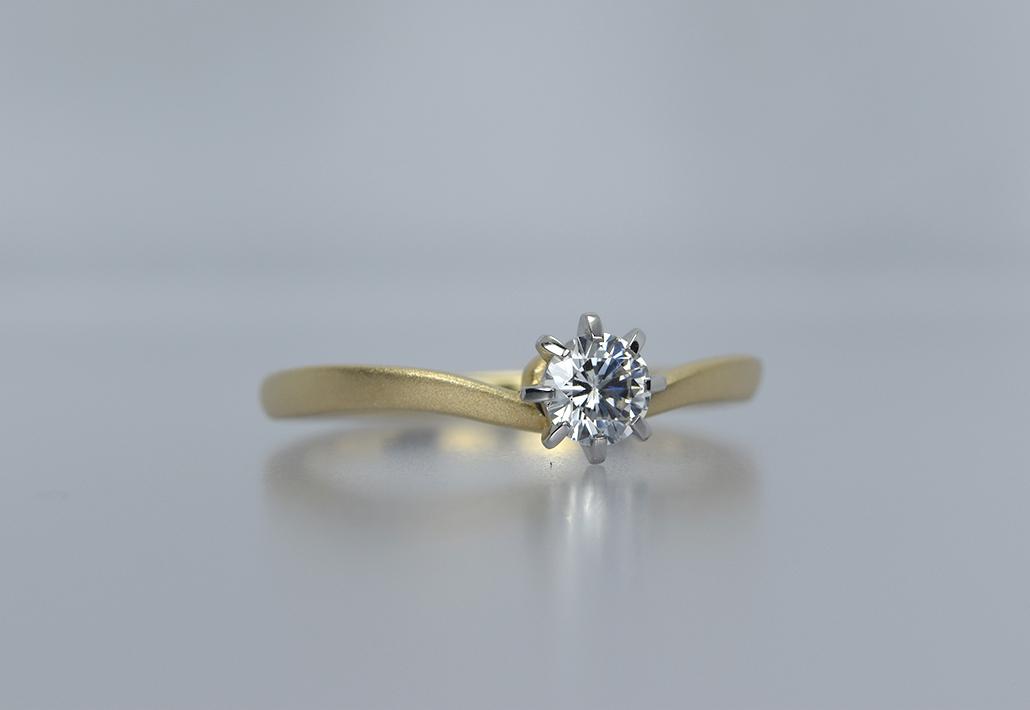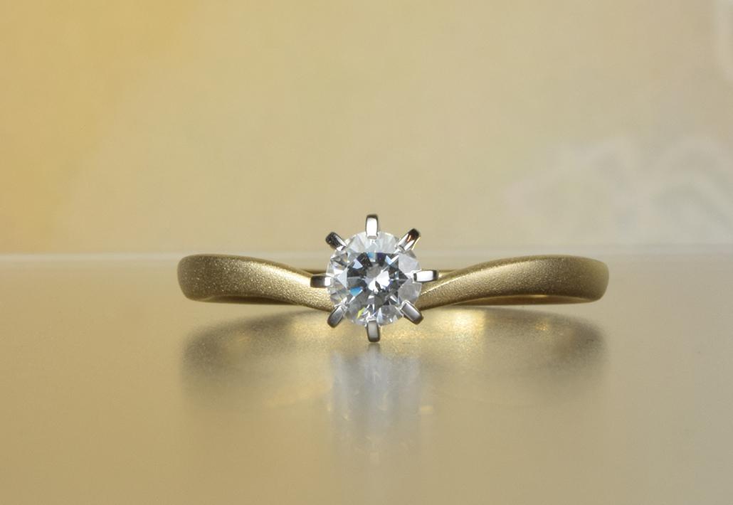 プラチナ&K18婚約指輪|K18のつや消しアーム8本爪がかわいいと人気のリングです。 EG-032-8P-001