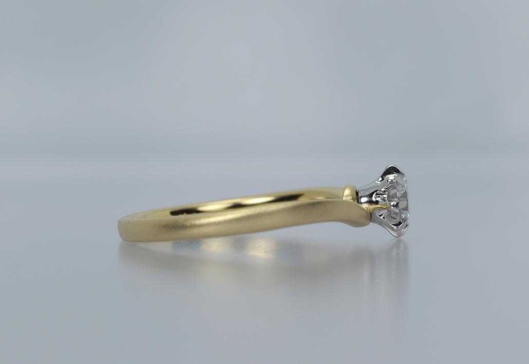 アームの柔らかなVシェイプのカーブに、輝くセンターのダイヤはまるで咲きたての花一輪。