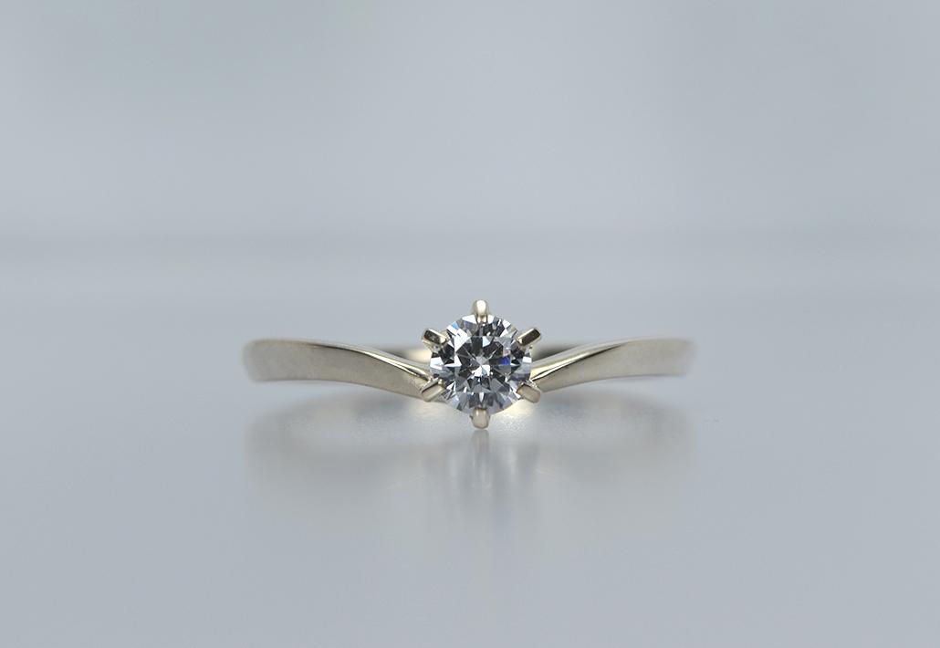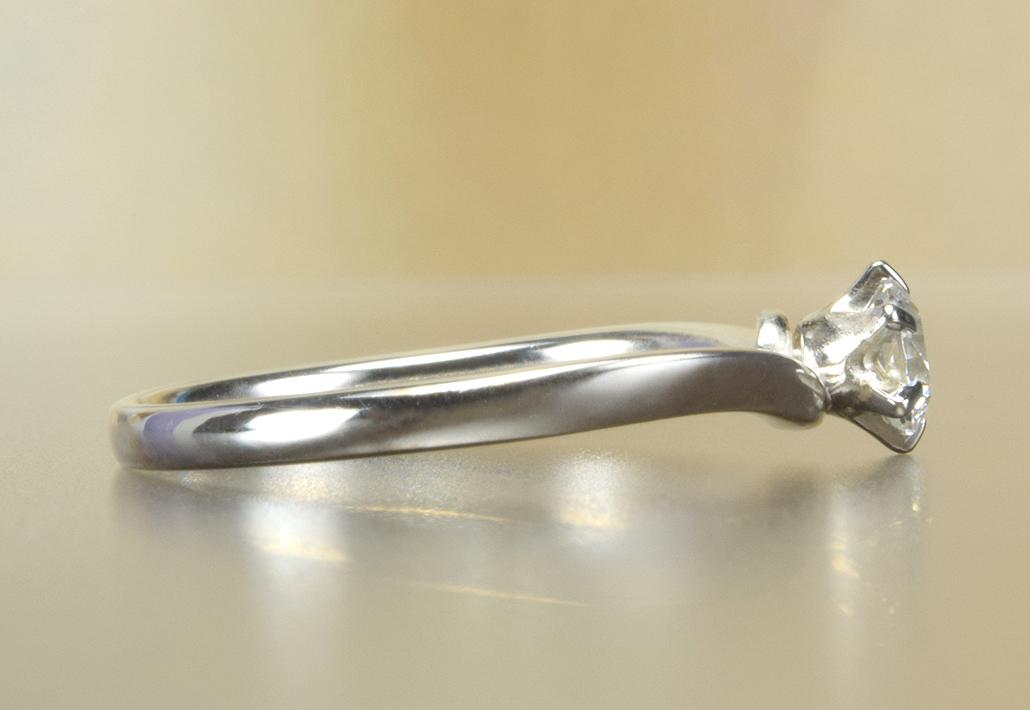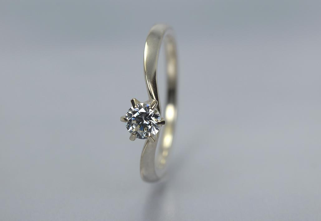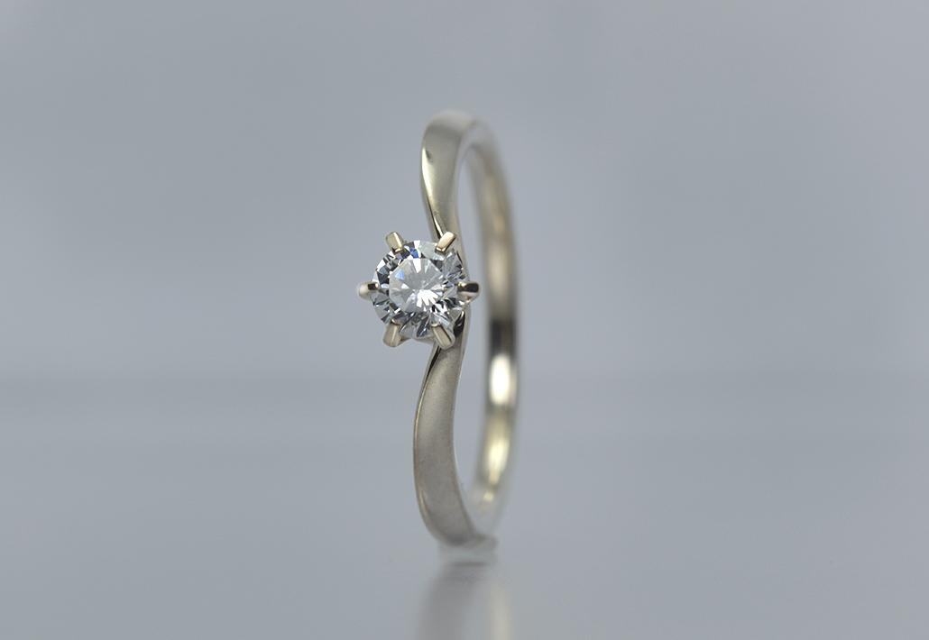 金属アレルギー対応ハフ二ウム婚約指輪|指が長く見えるVシェイプアームが羽ばたく羽根のイメージの EGhf-013-6P-001