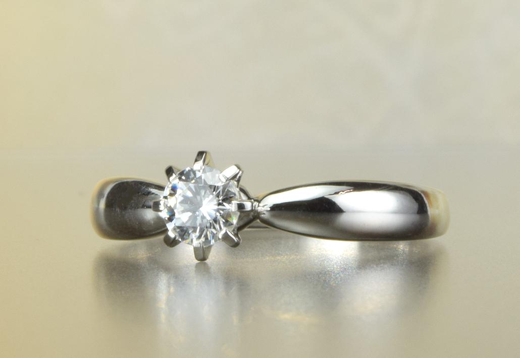 ダイヤモンドを支える石座には、最近人気上昇中の8本爪の石座をチョイス。