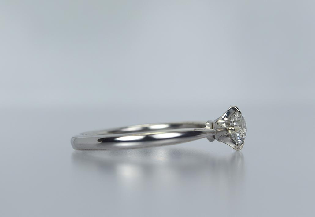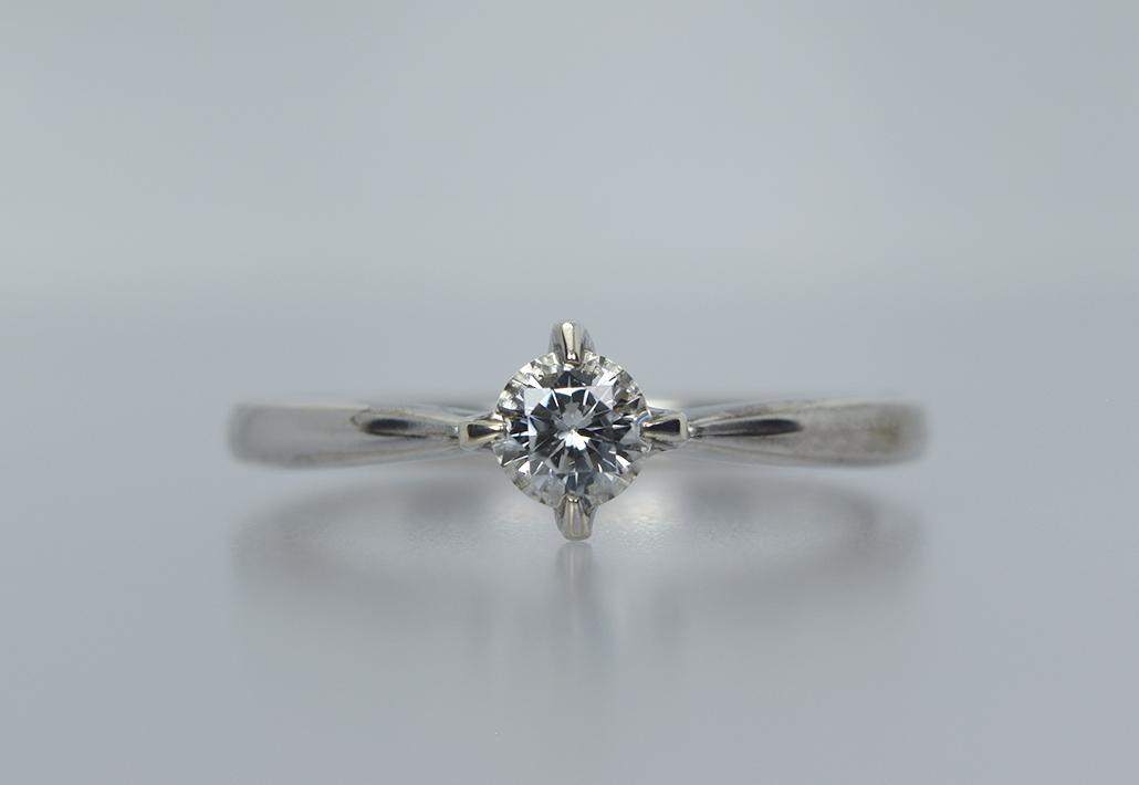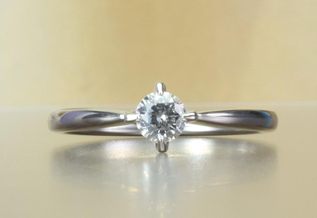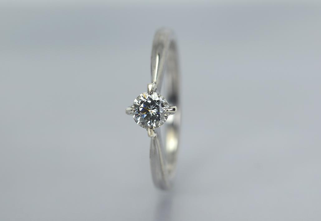 定番の6本爪ソリテール(一粒石)エンゲージと一味違う、上下左右に4本の爪を配置したクロスセッテイングのエンゲージです。