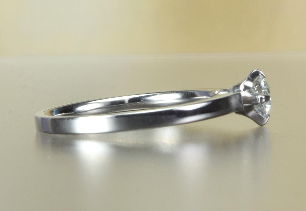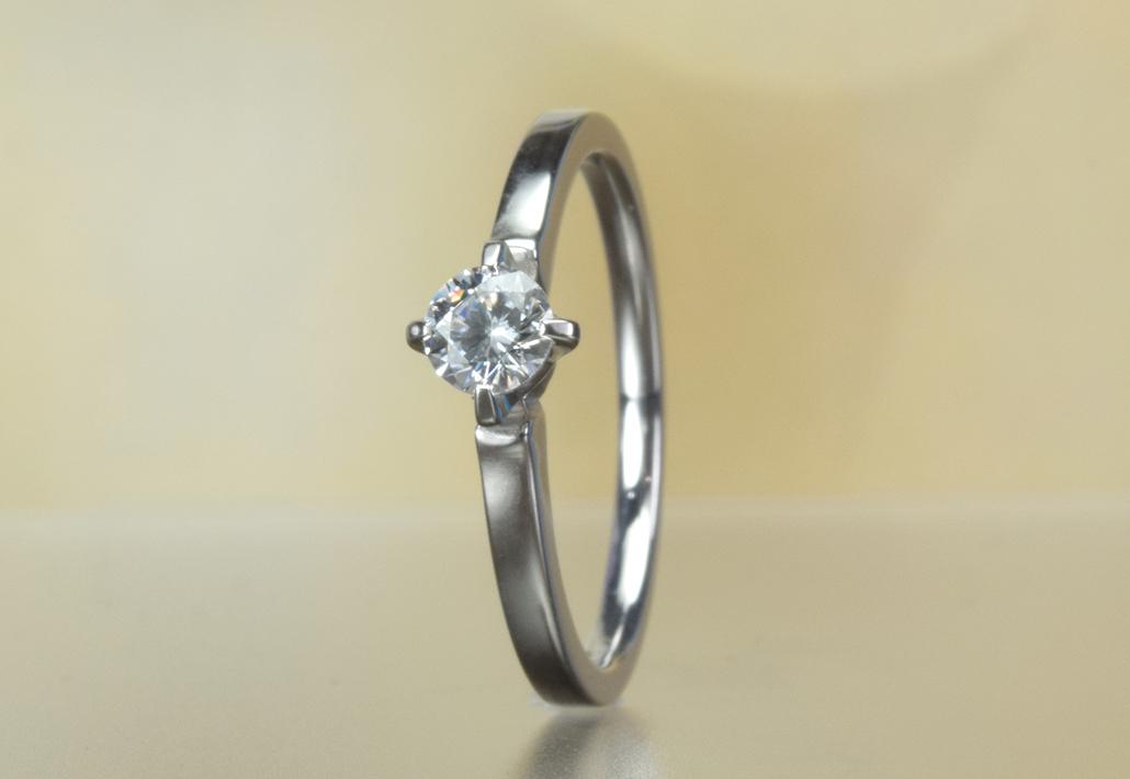 クラシカルで甘さを抑えたデザインが映えるアレルギー対応婚約指輪です。
