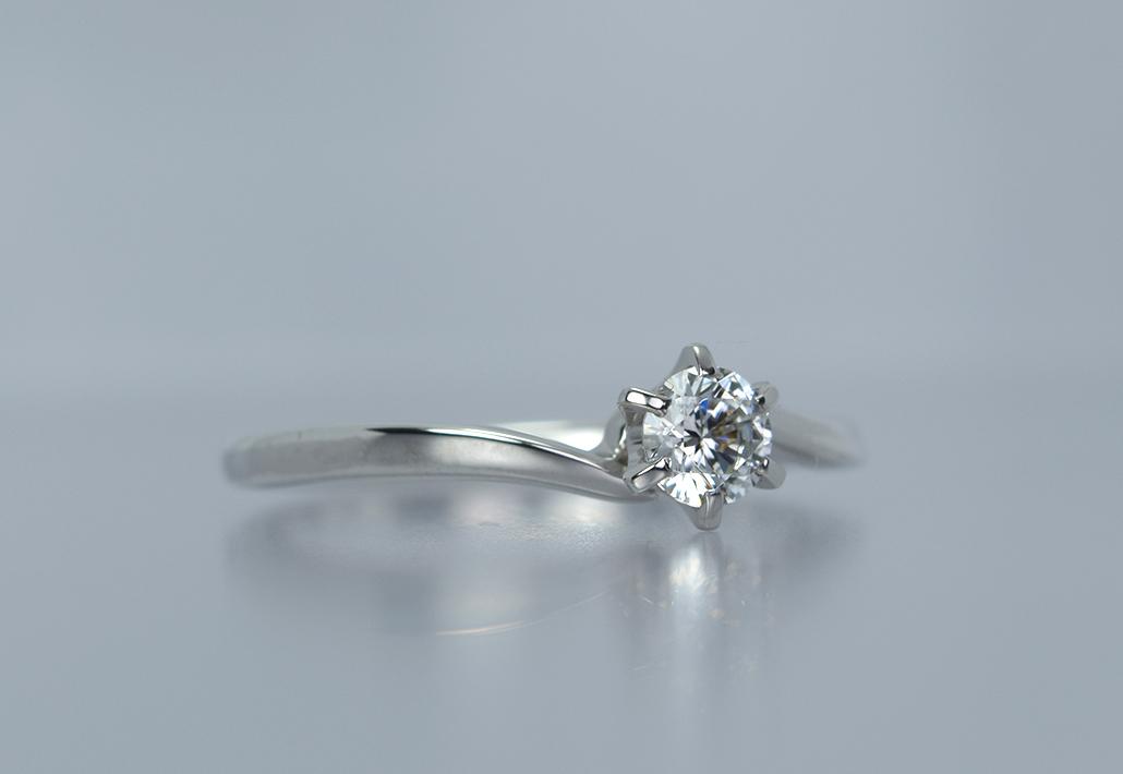 金属アレルギー対応 ジルコニウム婚約指輪|ツイストアームは指が長く綺麗に見えるデザインで女性に人気モデル EGzr-010-6P