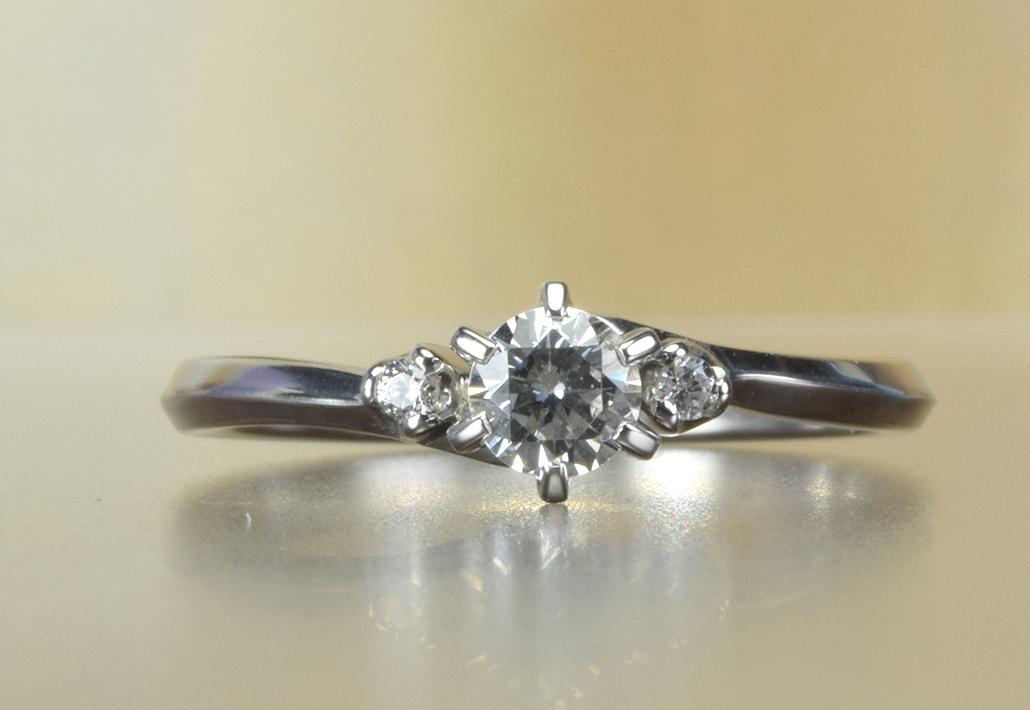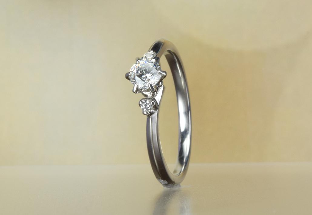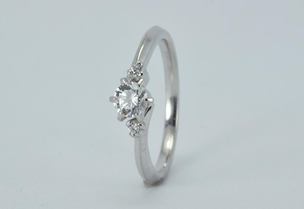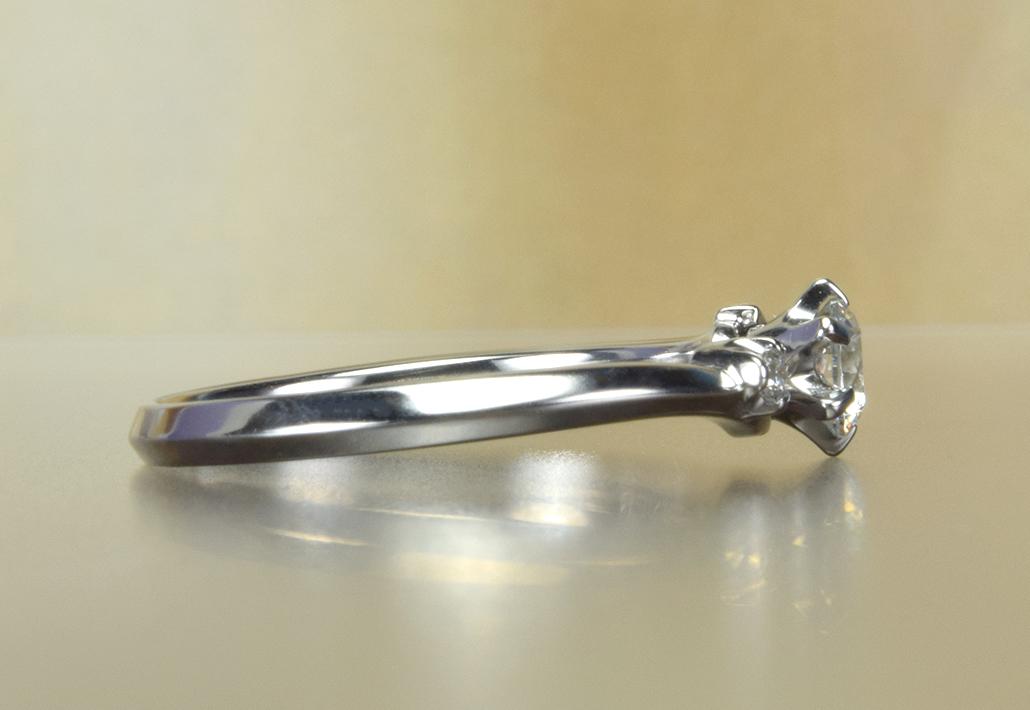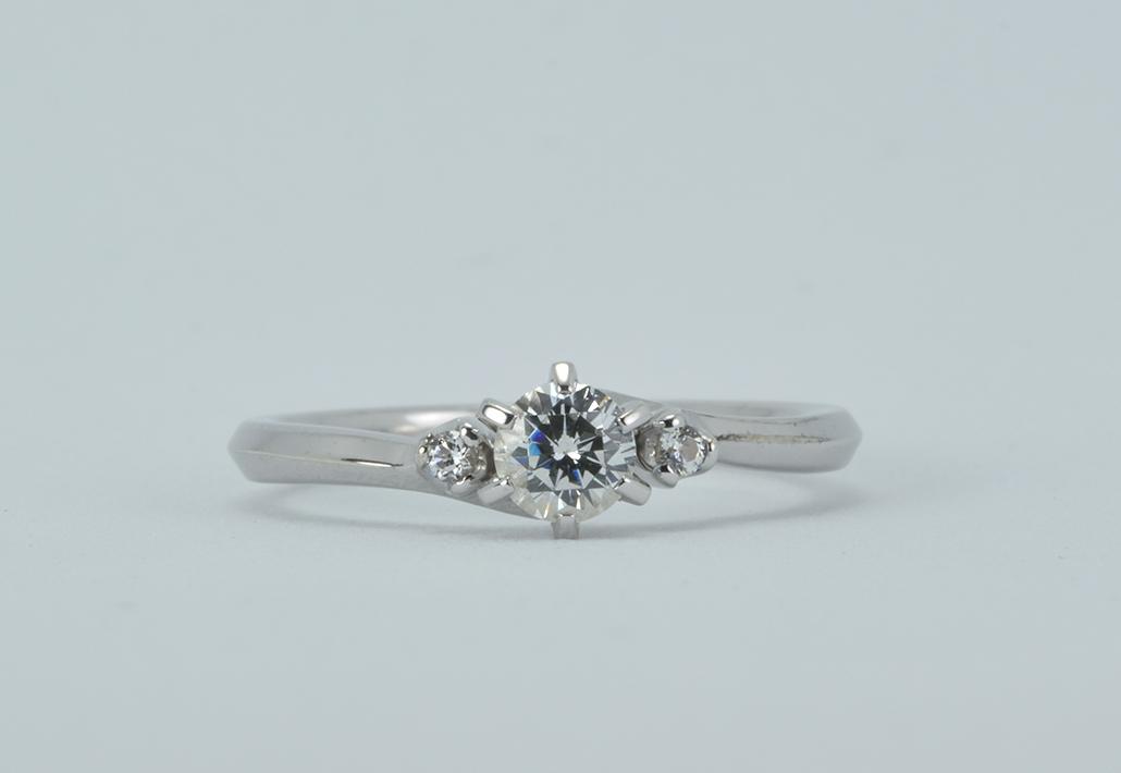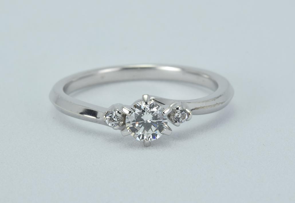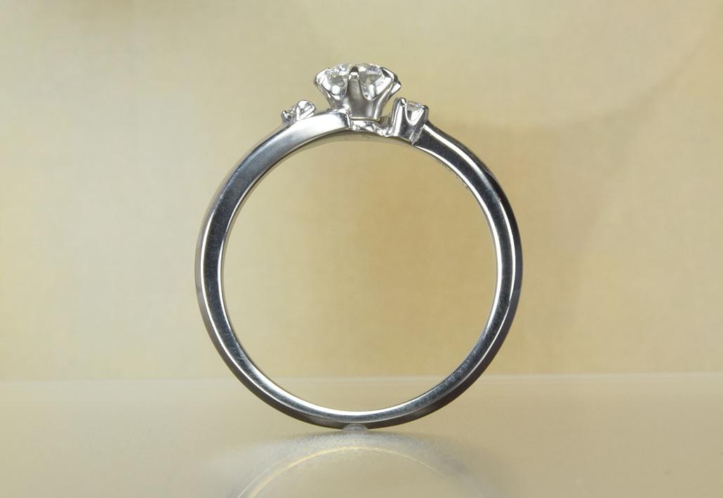 金属アレルギー対応ジルコニウム婚約指輪|ツイストアームで指が長く綺麗に見える|脇のダイヤモンドは誕生石に交換が可能! EGzr-030-6P-001