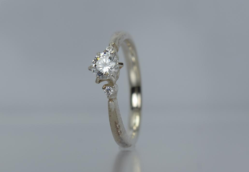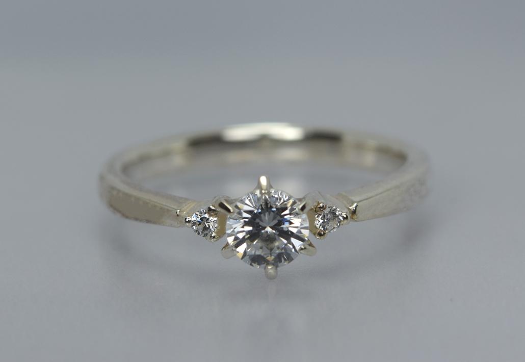 一番オーソドックスなストレートアームのセンターラインに、センターのダイヤ、その両脇に一粒づつ小粒ダイヤ。
