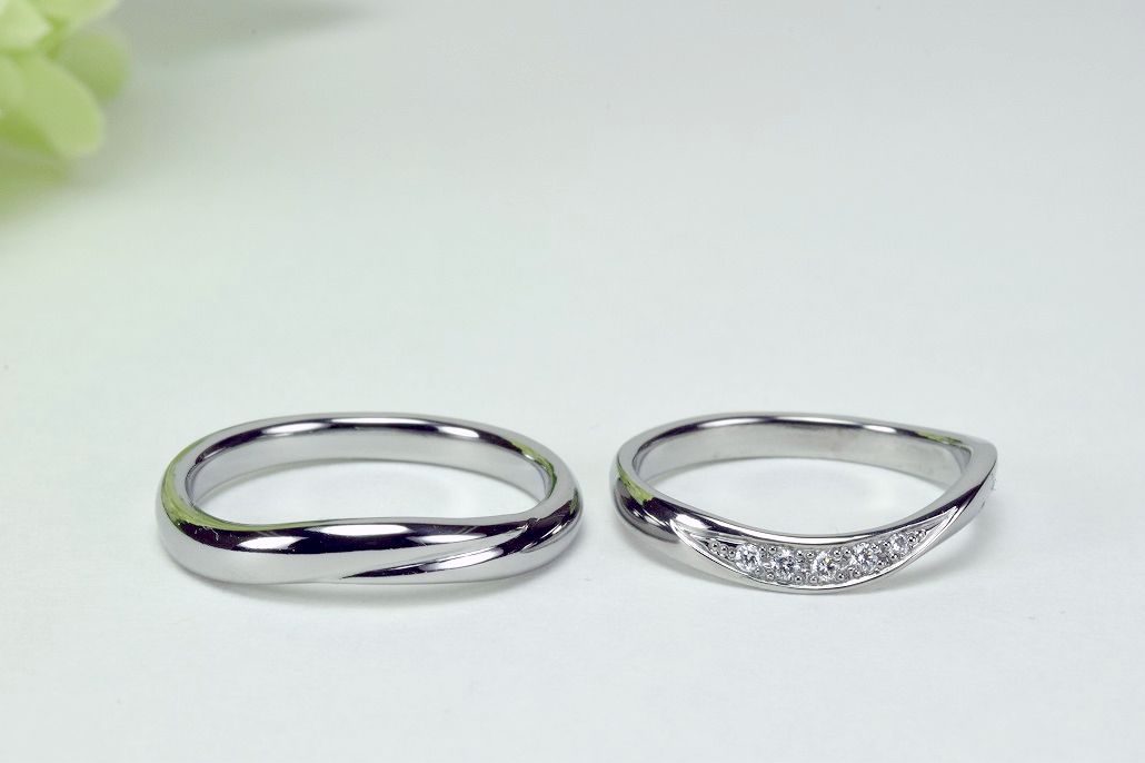 彼はシンプルで石は入れず彼女のはダイヤモンドを5個入れる事になりました。ハフニウムはプラチナの3倍の強度があり傷がつきにくいのでメンテナンスが簡単という利点があります。そこも、とても喜んでいました。