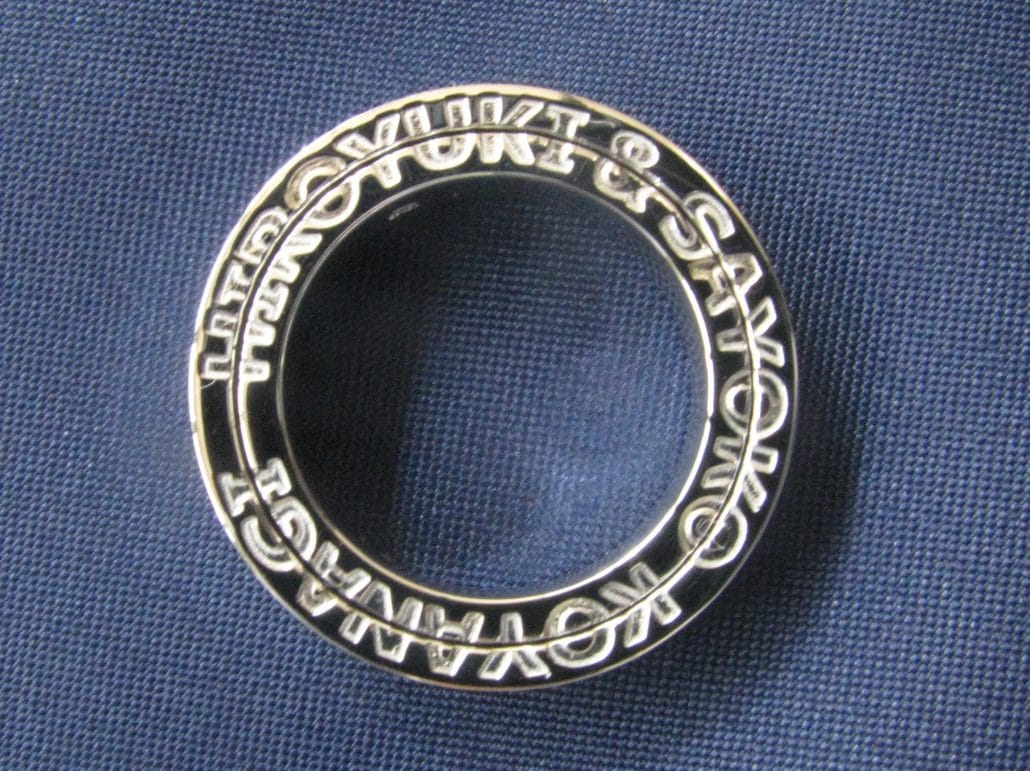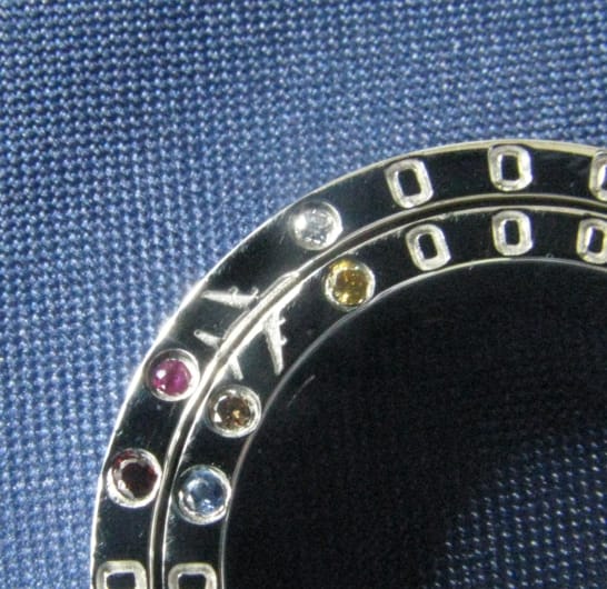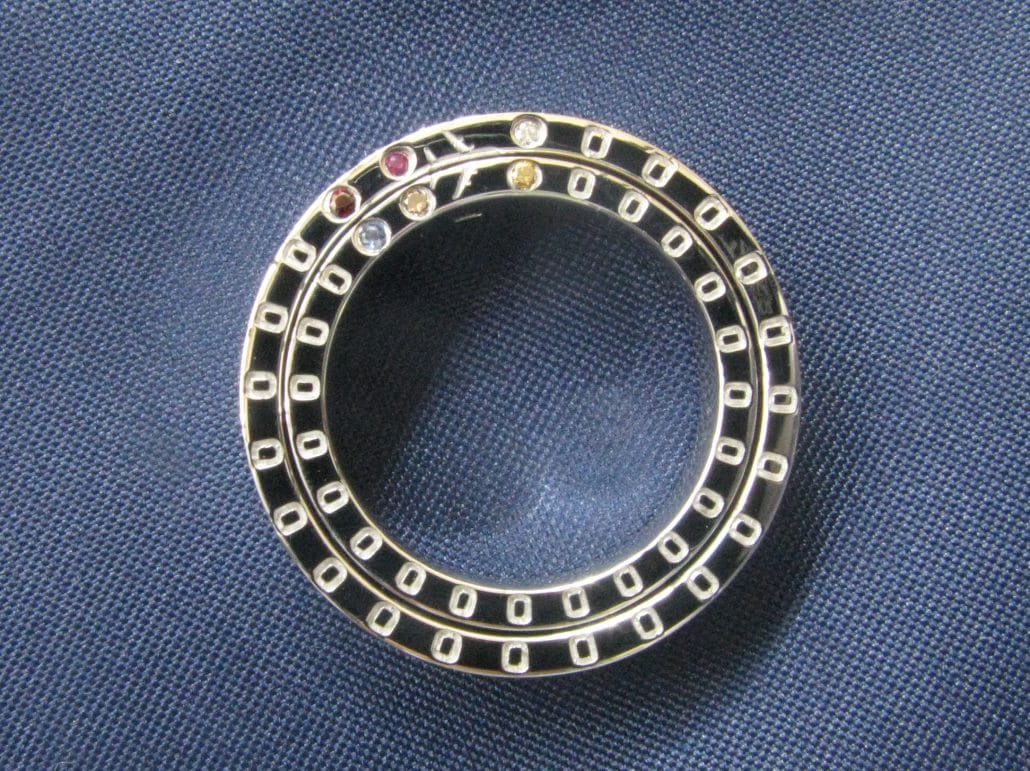 御新郎がエンゲージに続いてマリッジのオーダーに現れたのは、まだアメリカ勤務の合間の一時帰国の時でした。奥様も航空関係のお仕事で飛行機が大好き!レーザーで彫刻したジャンボ機のシルエットは丁寧に実機資料からトレースした本格派。あしらった宝石はカナダ、アメリカ・・・めぐった国の国旗の色のガーネット、ブルーサファイア・・・をチョイス。素材は世界基準のプラチナ950で。<世界>がテーマのオンリーワンに仕上がりました!