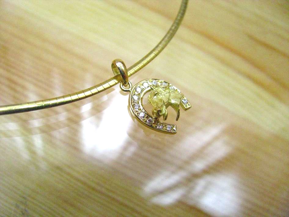 馬は幸運のアイテムの1つです。K18のメンズカフスを指輪とペンダントにジュエリーリフォームの依頼です。