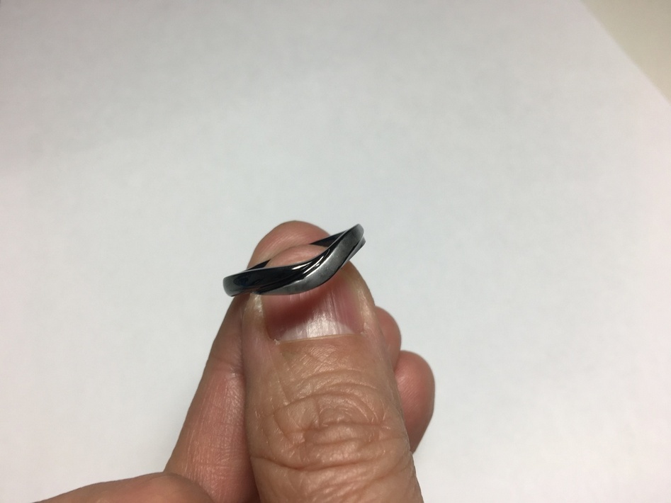 ウェーブタイプのブラックチタンは始めてのトライでした。交差する片方のカーブをマットシルバーに仕上げてデザインを確認・・・「かっこいい・・・」想像以上にイイですね!写真がうまく撮れなくて伝わりにくいかもしれませんが、ブラック&シルバー、クラフトマン的にもオススメの仕上がりです。