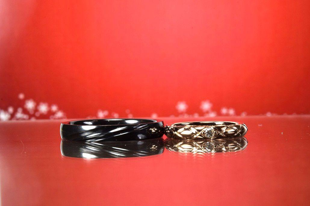 かっこいい黒&前から好きだったピンクゴールド 2人の願いが叶った結婚指輪
