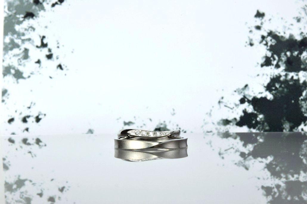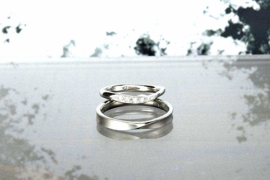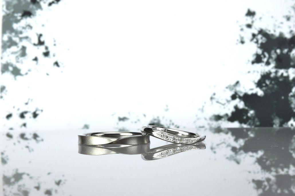 金属アレルギー対応の純チタン&プラチナの結婚指輪 違うデザインと素材でもペア感がある! O-MA-365