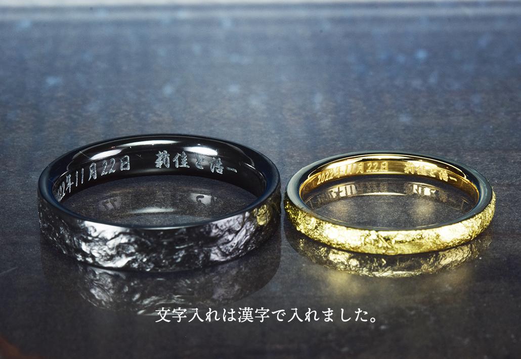 お二人のこだわり:お気に入りのバック柄・指輪の内側文字:漢字
