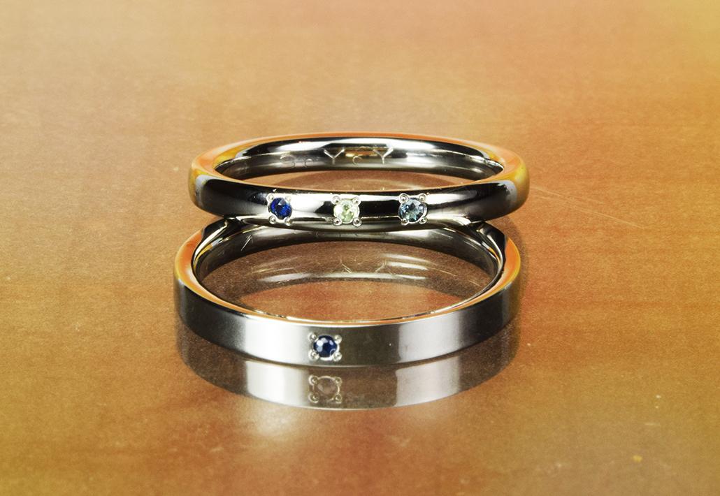 生まれてくる赤ちゃんの誕生石とお二人の誕生石を入れた結婚指輪(ファミリーリング)O-MA-367