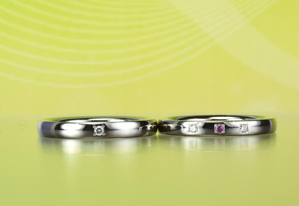 〇リングの表面にお二人の誕生石やダイヤモンドの追加が可能です。