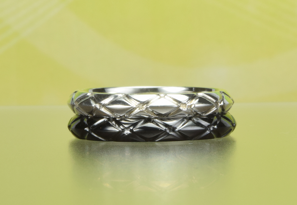 アーガイル柄の格子と、リングセンターのエッジが織りなすきらめき。